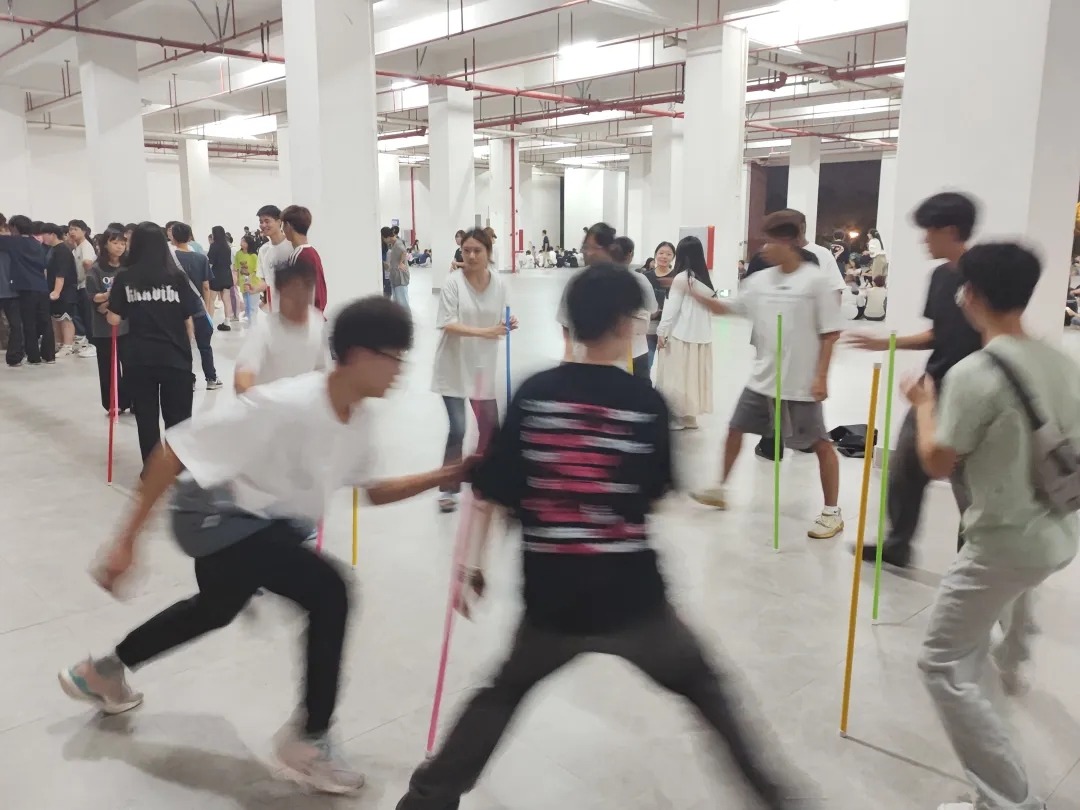 在班助和班长的组织下,同学们被分成多个小组,参与了一系列充满挑战和乐趣的团队拓展活动。活动包括了“二人三足接力赛”、“不倒森林”和“解手链”等精彩游戏。现场洋溢着激情与活力,掌声和欢呼声交织,洋溢着欢声笑语。