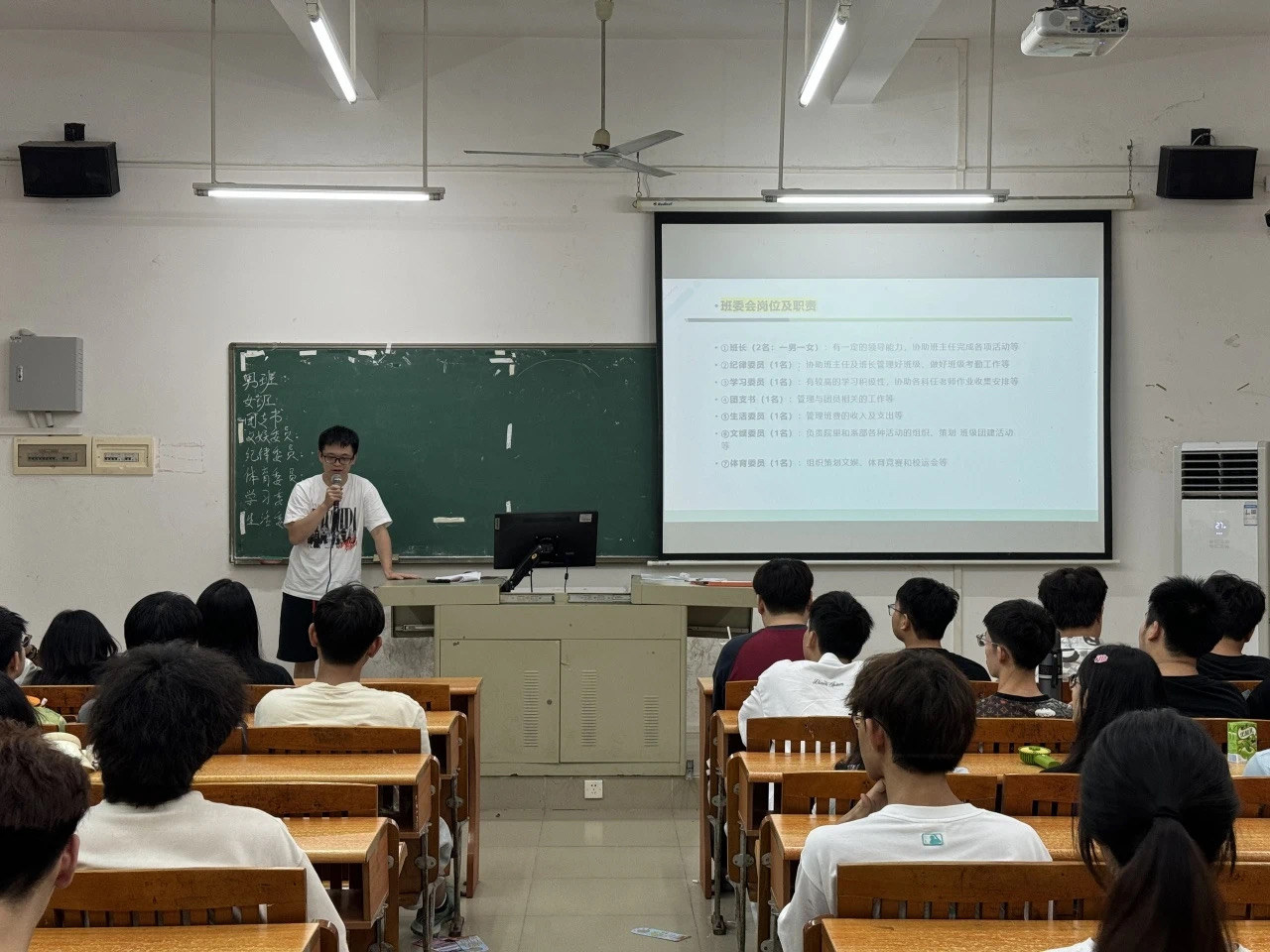 随着新学期的钟声敲响,国产又粗又猛于8月31日晚上在博学楼召开了以“焕发新生机,开启新征程”为主题的“开学第一课”。此次活动旨在促进新生之间的相互了解,增强班级凝聚力,同时帮助新生们更好地适应大学生活,明确学习方向和目标。本次班会由学院各班级新生辅导员助理主持,参加本次会议的有院团委副书记陈海宁与新生辅导员黄向荣以及24级全体新生。