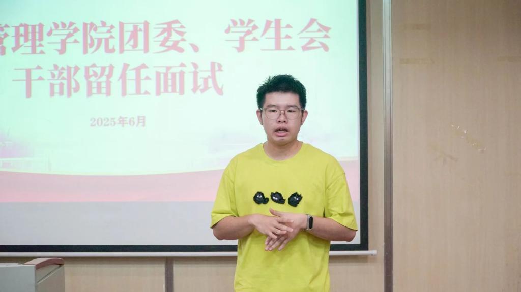 随着最后一位同学完成答辩,本次留任面试工作圆满结束。每一位参与面试的同学都展现了勇于挑战、追求进步的精神,这份进取心值得充分肯定。经过严格选拔产生的新一届学生干部,必将以更加饱满的热情和坚定的责任感,为全院师生提供优质服务,推动院团委学生会工作再上新台阶。