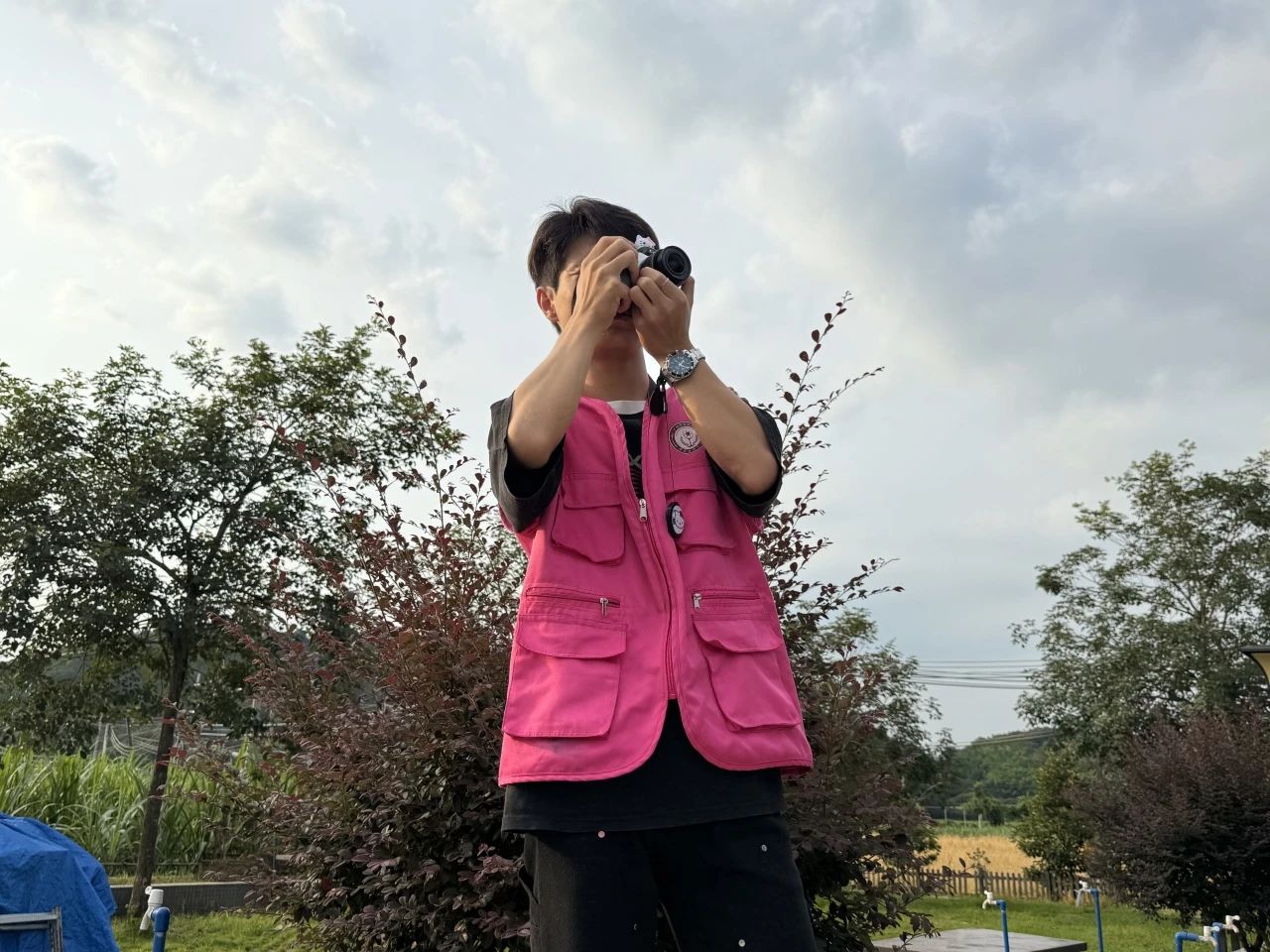 当孩子们的脚步声惊醒田间的露水,镜头便开始了忙碌的追逐。小手攥紧幼苗时指缝漏下的阳光,彩绘课堂上沾着金粉的鼻尖,稻田里追逐小鸭时扬起的衣角…… 这些灵动瞬间被一一定格。“每一次按下快门,都是对乡村振兴的一次微小助力。” 他们不畏烈日炙烤,不惧风雨突袭,背着设备穿梭在田埂与古村间,青春的汗水滴落在乡土上,晕开责任的印记。