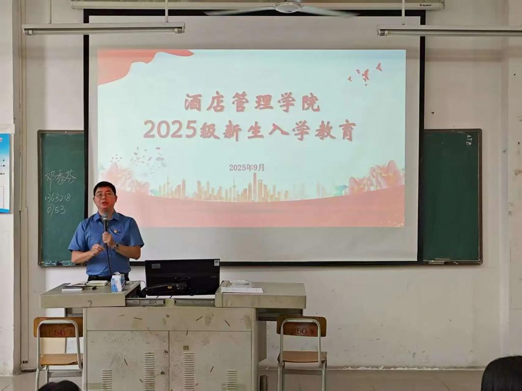 为助力2025级新生更快适应校园生活,清晰规划大学期间的学习目标与发展路径,同时培养其良好的行为规范与责任担当,9月1日下午,我院于博学楼的博A407、博A507、博B207、博B201、博B501教室开展了2025级新生入学教育。此次活动邀请了副院长谢锦权、院团委副书记陈海宁及辅导员黄向荣作为主讲人,讲解内容涉及奖学金评定办法、助学贷款相关政策、大学生职业生涯规划指导以及《学生手册》要点学习等重要内容。