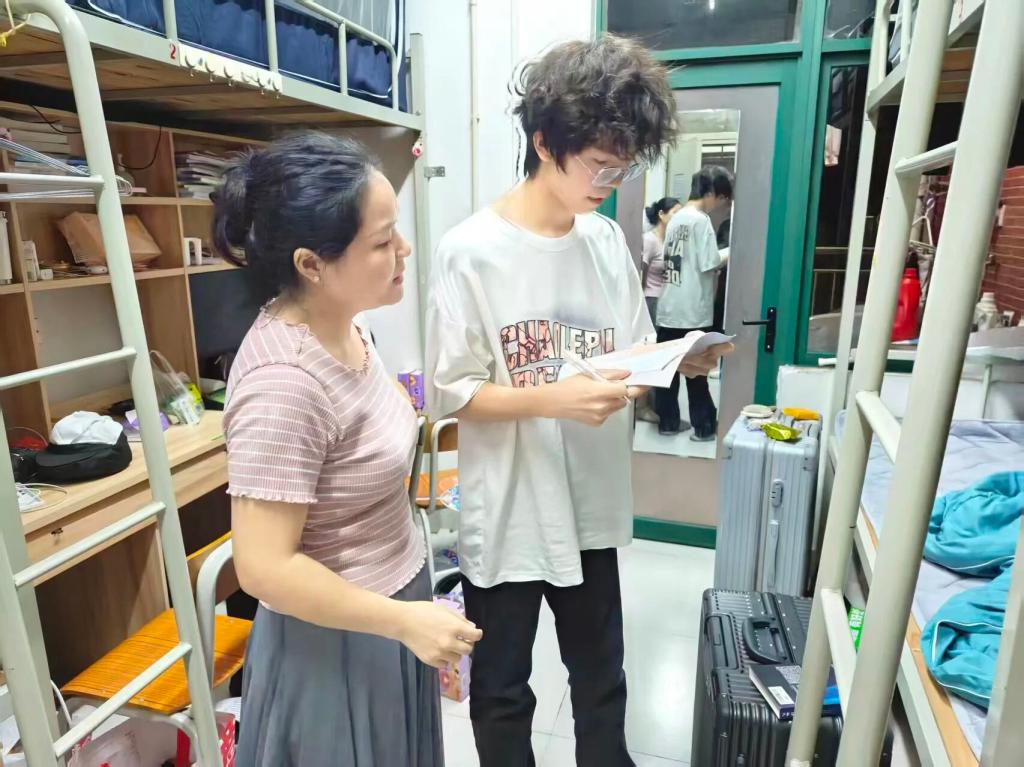 检查过程中,学院老师深入各宿舍,重点排查水电使用规范、消防设施完好度、物品存放安全等情况,对发现的潜在隐患及时提醒整改,反复叮嘱同学们提高安全意识,杜绝违规用电、杂物堆积等问题,从细节处为宿舍安全筑牢防线。同时,老师们也与同学们交流返校后的适应情况,了解大家在生活、学习上的需求,引导大家做好宿舍整理,以整洁环境助力状态调整。