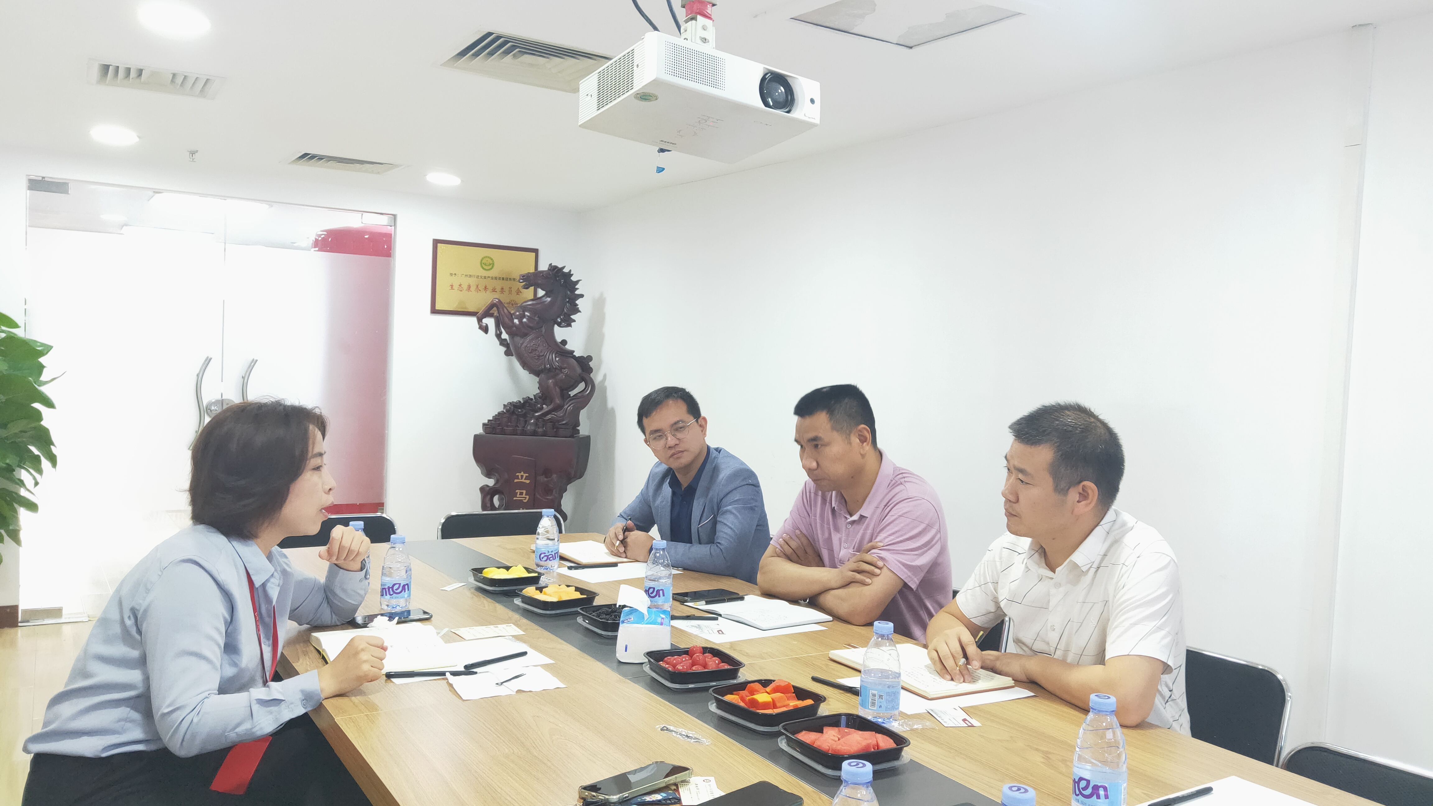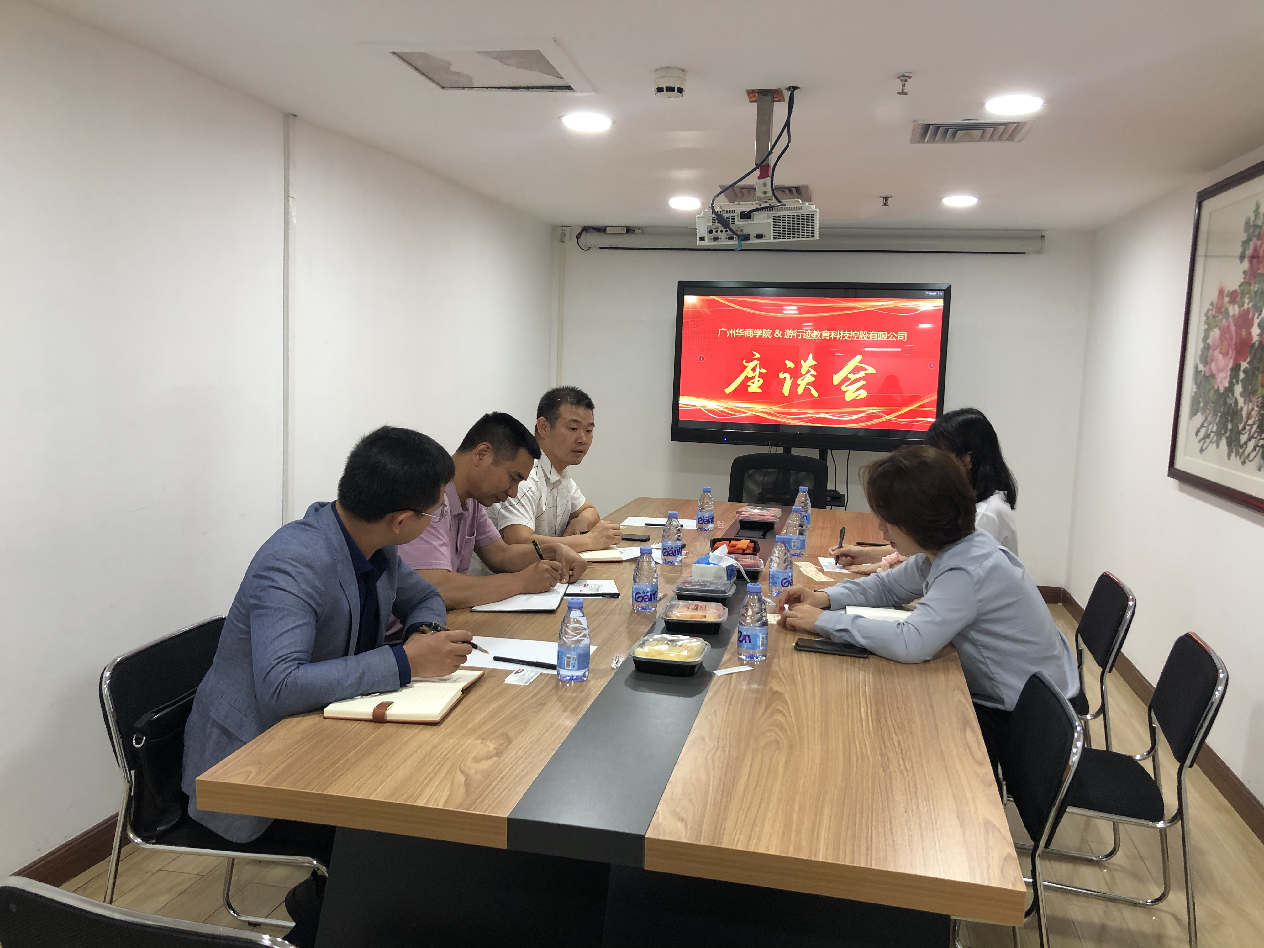 我院一行受到了广州游行迹文旅产业投资集团有限公司副总经理桑琳琳、游行迹教育总经理助理胡颖怡等领导的热情接待。我院袁尧清院长一行在会议厅进行了深入的学习交流。广州游行迹文旅产业投资集团有限公司副总经理桑琳琳在交流会上致辞,对我院一行的到来表示欢迎,然后介绍了该集团的合作意向。