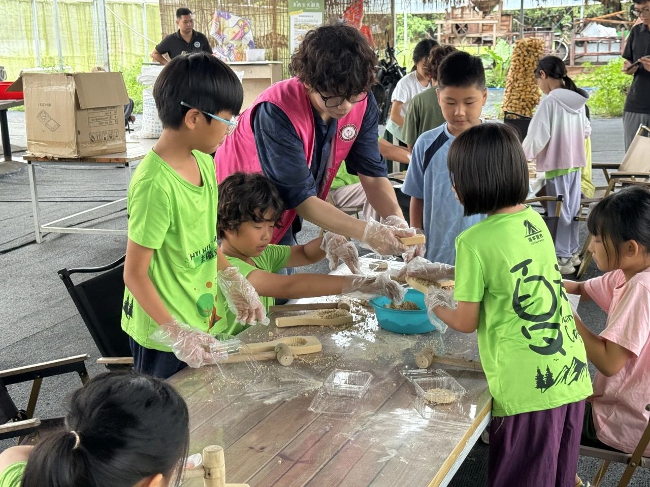 在倚丰综合营地的户外教学区,我们化身为研学小导带领孩子们一起制作树面包。这种手工面包外观酷似树干,造型别致且口感丰富。队员们详细讲解了制作步骤,从揉面、发酵到造型装饰,孩子们亲自动手,在欢声笑语中锻炼了动手能力,也对自然形态有了更直观的认识。这种将创意与自然相结合的活动,能激发孩子们的想象力和创造力。