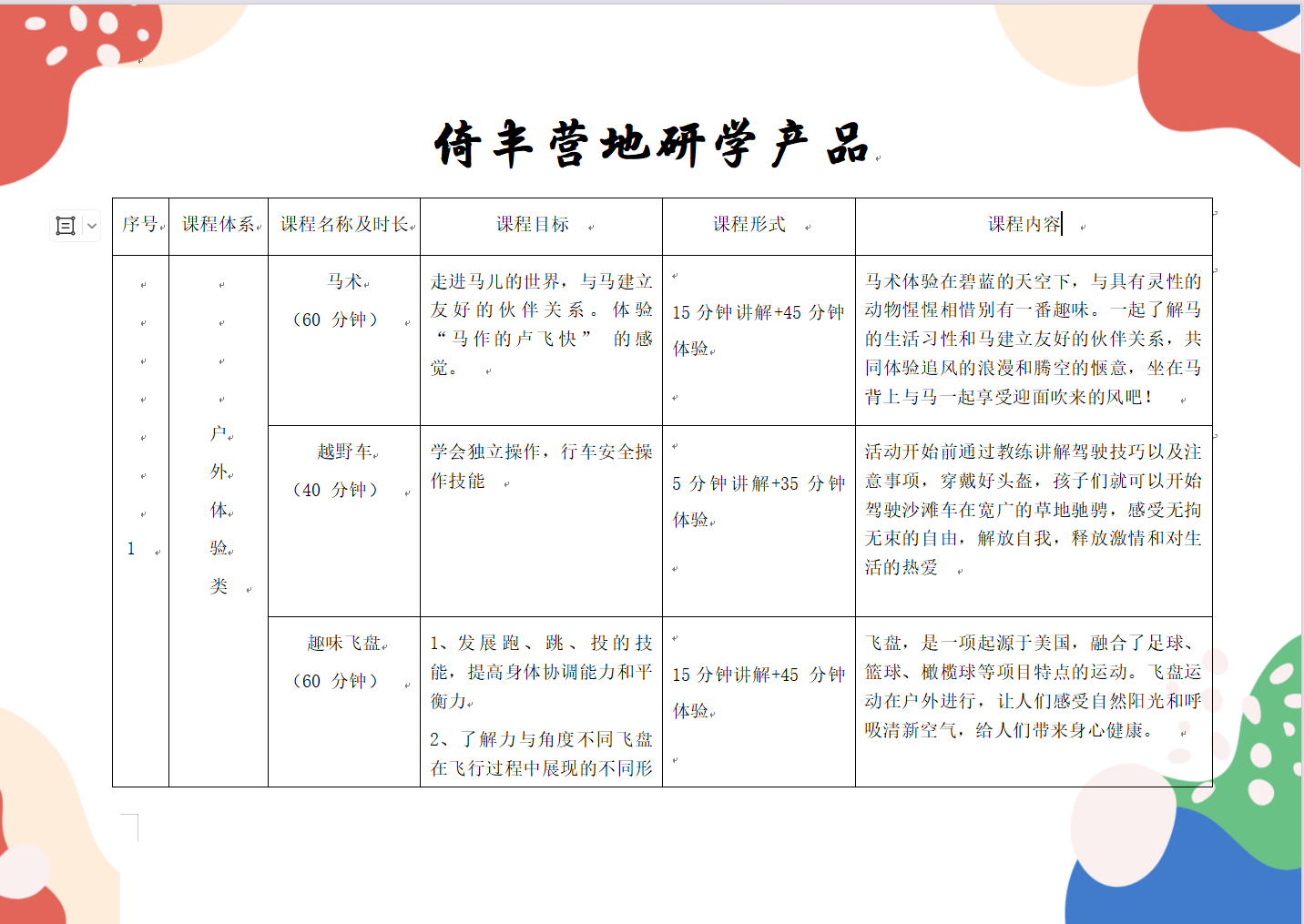 户外体验类(射箭、越野车、攀岩等)保留趣味挑战,强化安全与技能培养 ,让学生玩得开心、学得扎实~