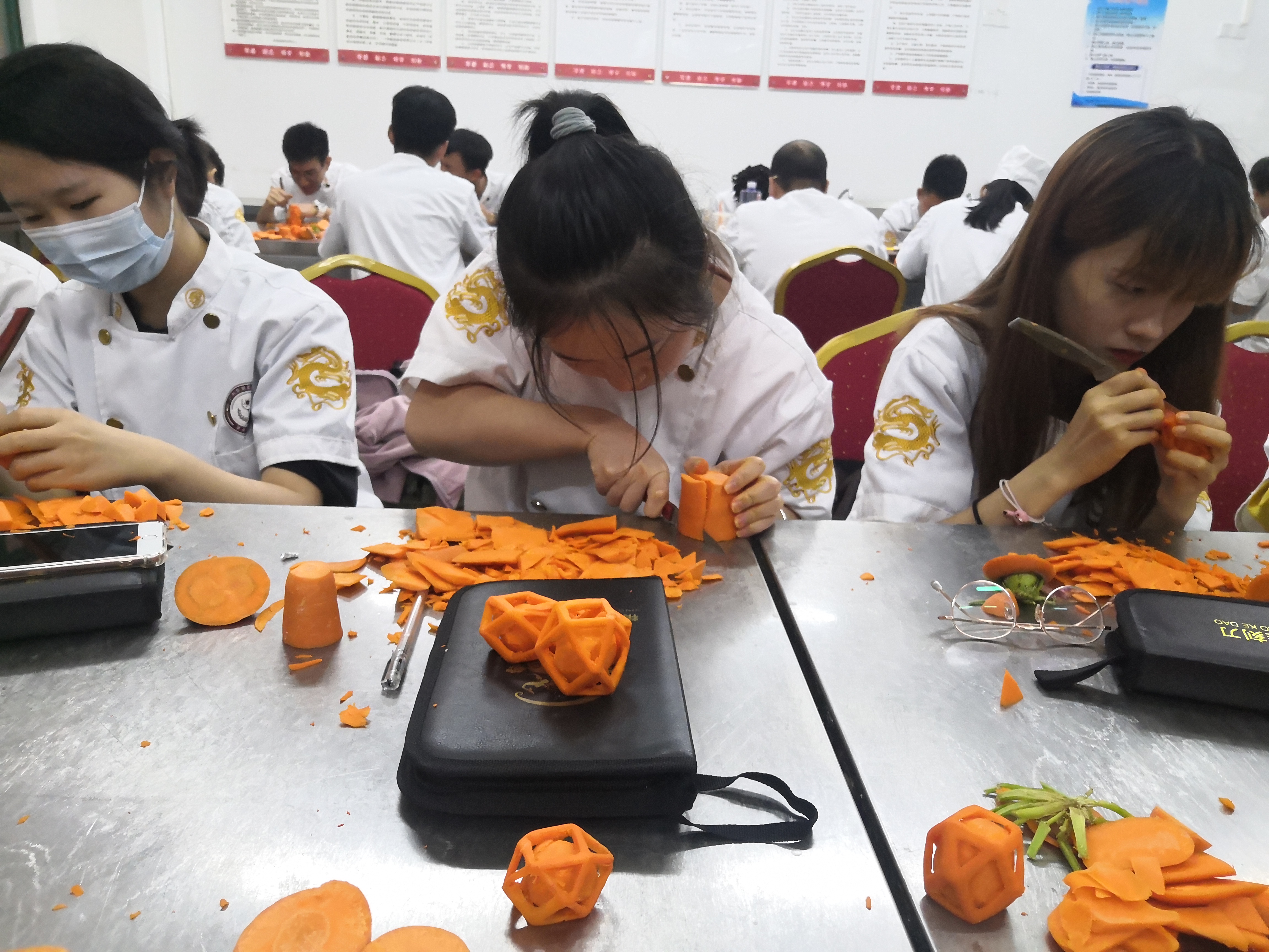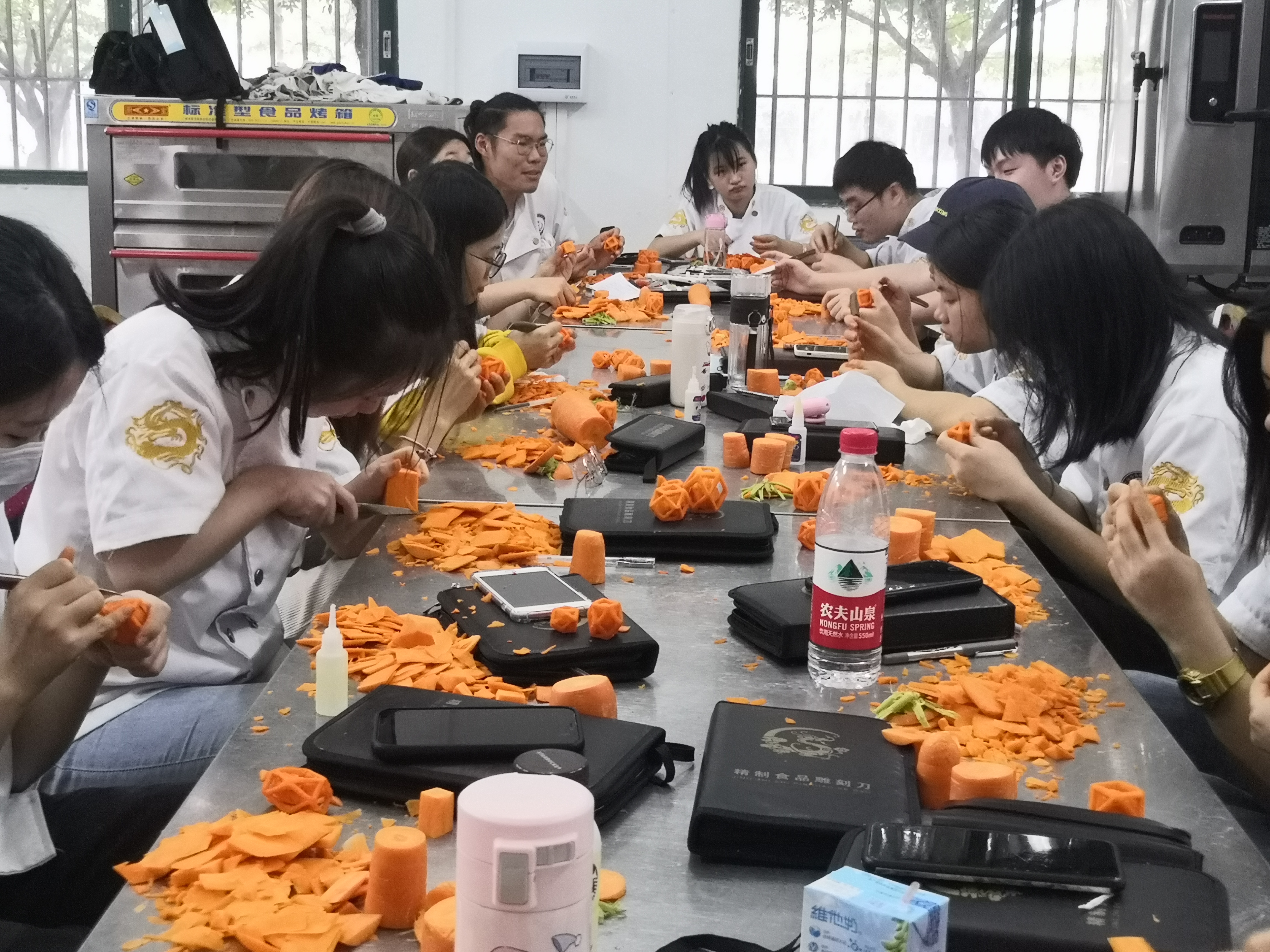 今天带大家走进国产又粗又猛实训课堂,同学们正在全神贯注地进行食品雕刻训练。同学们手上制作的是“玲珑球”,玲珑球的寓意是事业通顺、财源滚滚,给主人带来好运道。