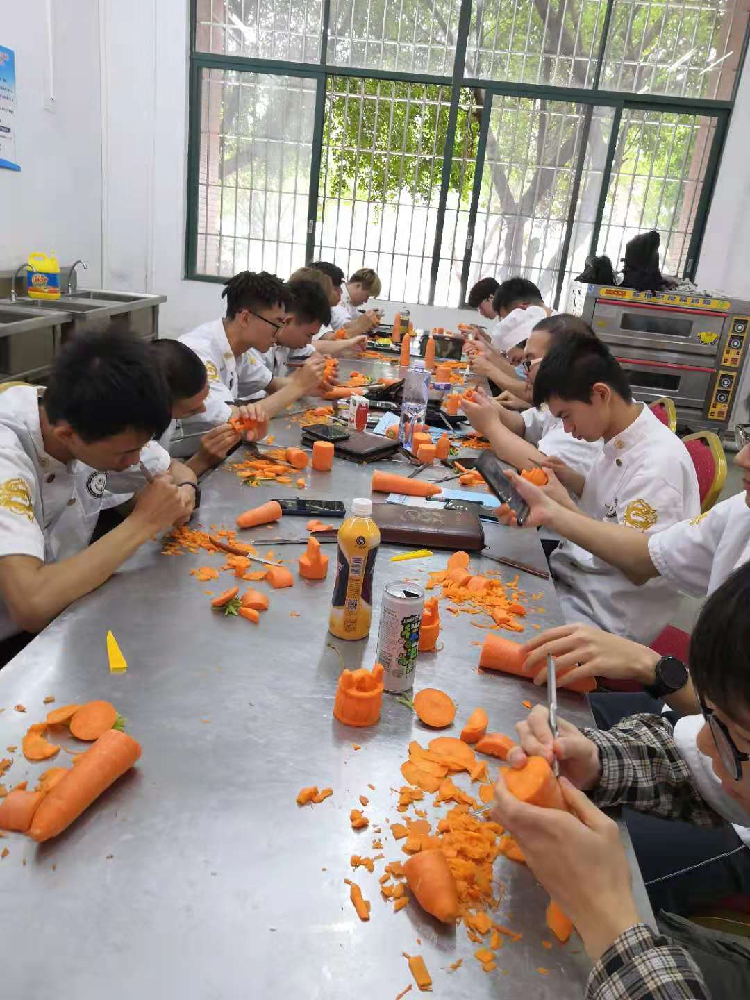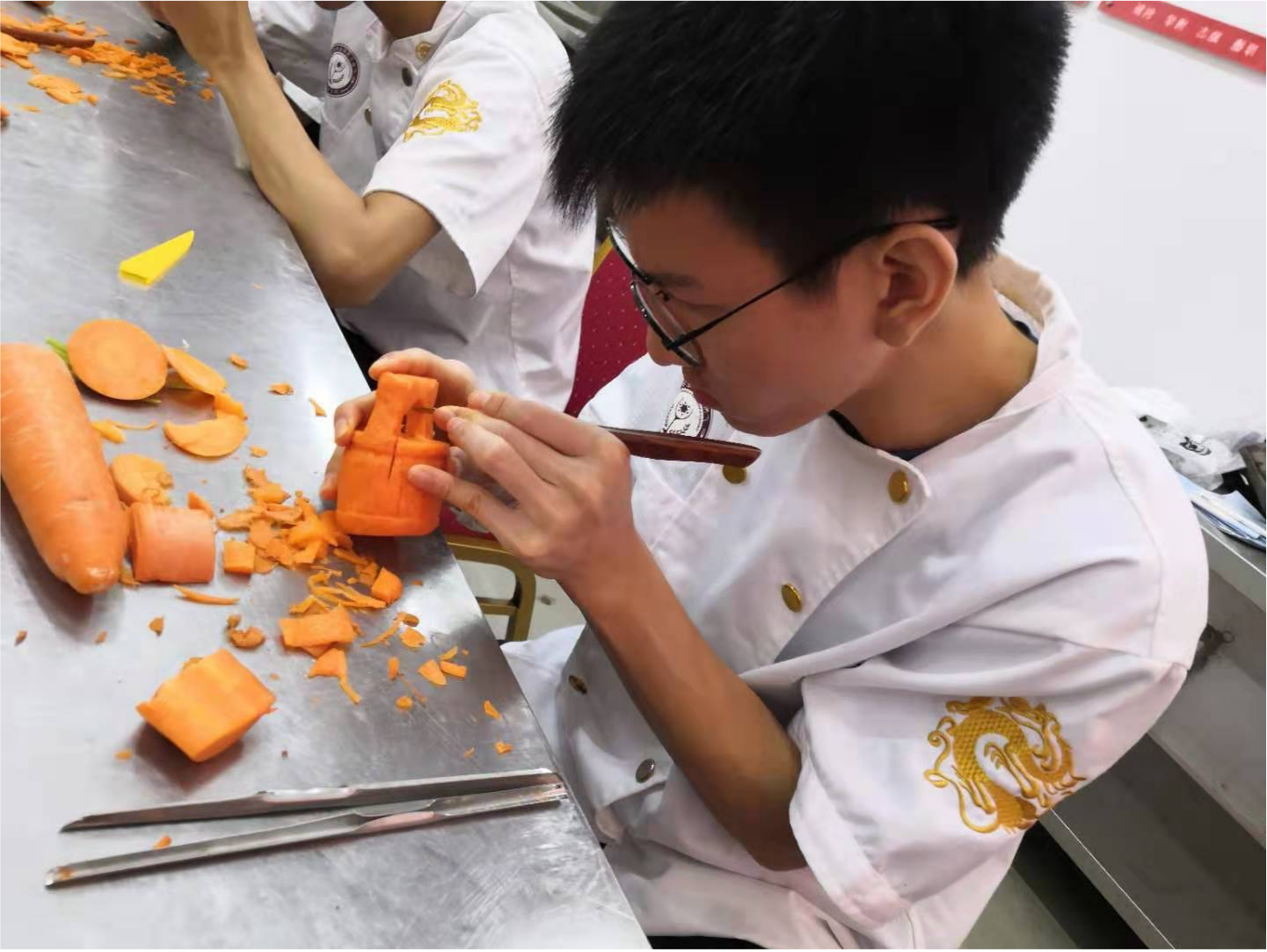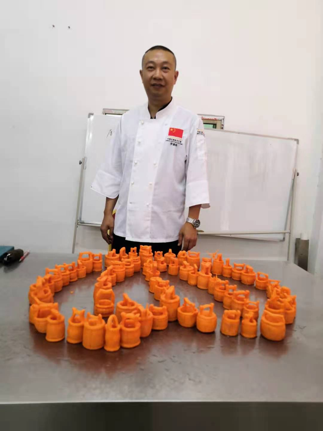 今天我们走进国产又粗又猛的实训课堂,中国烹饪大师李绪彬老师正在指导学生开展食品雕刻训练。本次食品雕刻的主题是“水桶”,李大师耐心地向同学们讲解步骤、要领,并一一做了示范。在实践环节,同学们发扬工匠精神,精益求精,给老师交出了自己用心雕刻的作品。李大师对每一个作品都作出点评,给予了恰当的评价。