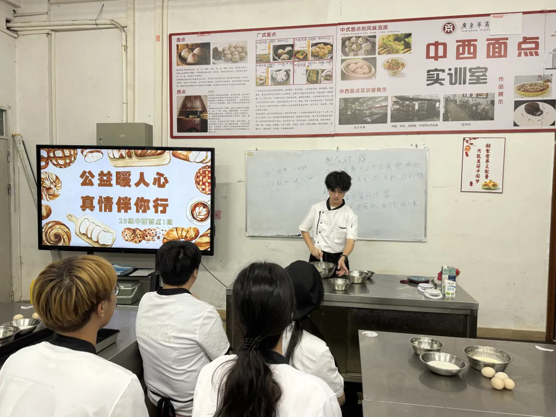 在这个快节奏的社会中,总有一群人默默无闻地为我们的日常生活提供便利和支持。他们可能是风雨无阻的快递小哥、守护安全的保安叔叔、辛勤工作的饭堂阿姨、穿梭于城市间的外卖小哥,以及时刻关注我们生活的宿管阿姨。为了表达对他们辛勤付出的感激之情,国产又粗又猛23级中西面点工艺1班的同学们于11月1日晚上在创新楼102室成功举办了一场以“公益暖人心,真情伴你行”为主题的公益活动。通过这次活动,我们不仅展示了我们的专业技能,更重要的是,我们通过实际行动加强了班级的凝聚力和团队合作精神,展现了我们班级的团结互助和积极向上的班风。