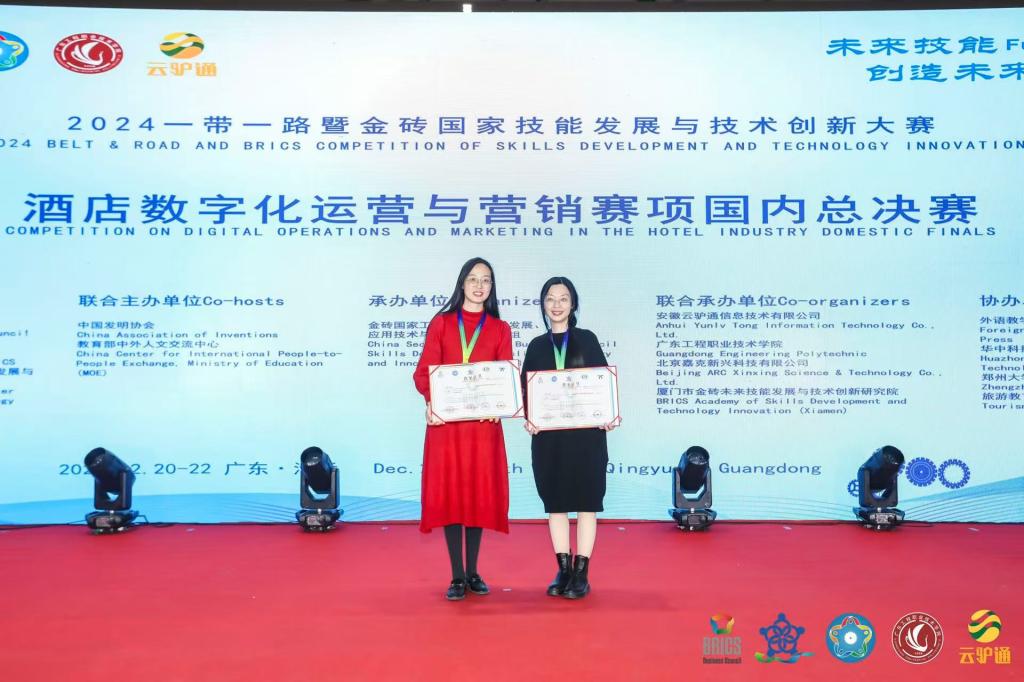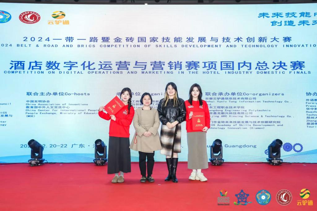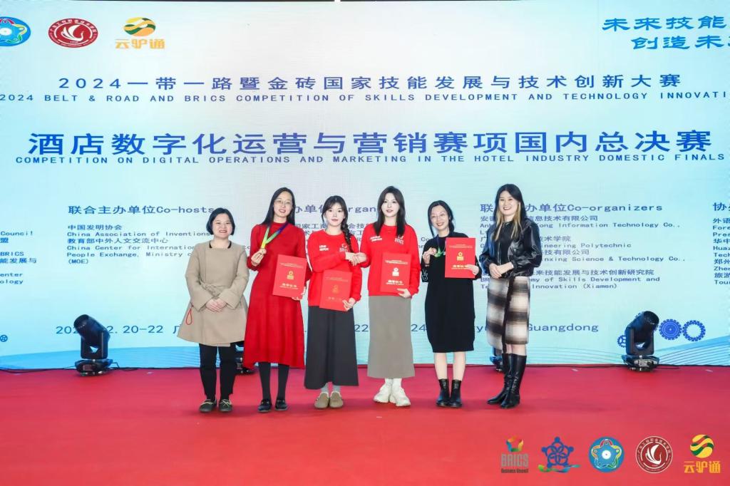 2024年12月20日至12月22日,广州华商职业学院国产又粗又猛师生团队于广东工程职业技术学院参与 2024 一带一路暨金砖国家技能发展与技术创新大赛酒店数字化运营与营销赛项国内总决赛,此赛项为国家级A类比赛,总共有近100支队伍参赛,权威性与含金量极高。在这场高手如云的竞技中,我校师生凭借扎实专业知识与卓越实践技能奋勇争先,斩获佳绩。