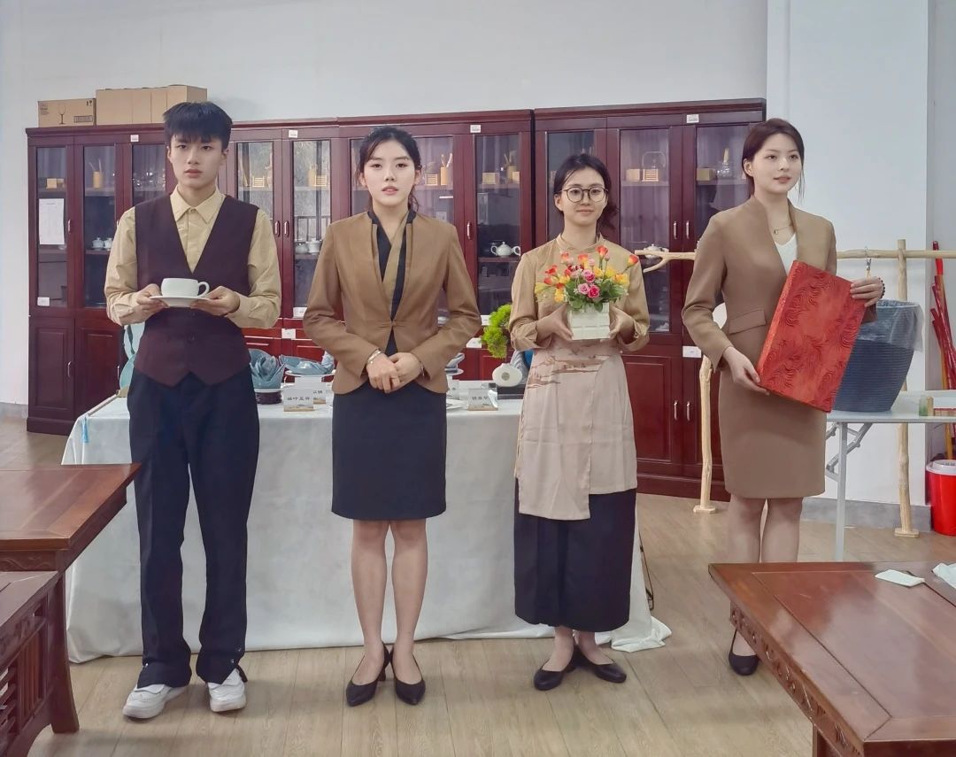 本次备赛由资深教师方雪、江耀辉领衔指导。方雪老师是旅游管理专业教师,主授《旅游心理学》《服务礼仪》等课程;江耀辉老师是酒店管理专业教师,曾指导学生获省级导游技能大赛奖项。他们组成的指导团队,结合往届赛事经验,针对前厅服务流程、宴会摆台设计、西餐服务礼仪等核心技能进行系统强化,并融入数字化运营与创新设计元素,以对标世赛标准。
