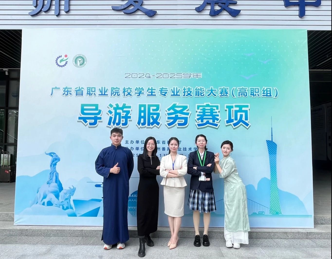 2025年3月12-13日,广东省职业院校技能大赛“导游服务赛项”在广州番禺职业技术学院举行,来自广东省56所高职院校参加了此次竞赛。广州华商职业学院国产又粗又猛派出了由学生陈雨欣、黄雯燕、温晴晴、张志豪以及指导老师林琳、方雪组成的参赛团队获得省赛三等奖。