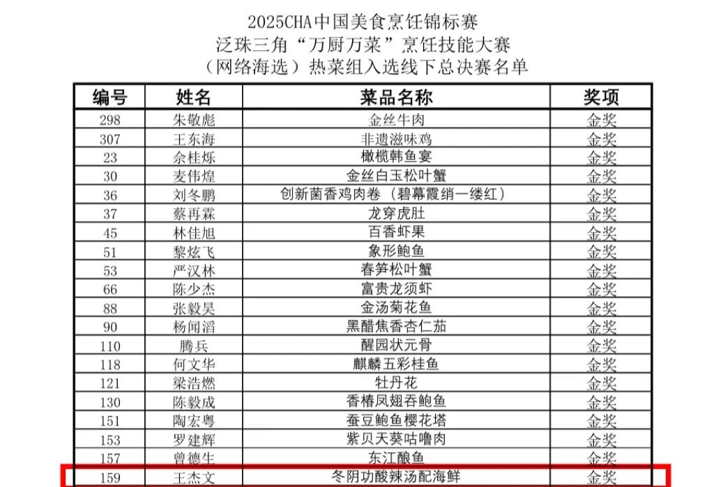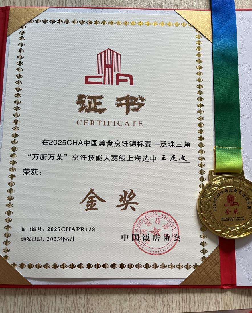 近日,在2025CHA中国美食烹饪锦标赛—泛珠三角“万厨万菜”烹饪技能线上大赛,广州华商职业学院国产又粗又猛附属教学酒店·太阳城大酒店的西式烹饪教师王杰文凭借精湛的技艺和出色的创新能力,一举斩获金奖,凭借其精心制作的《冬阴功酸辣汤配海鲜》,从众多选手中脱颖而出,一举斩获金奖,并成功入围线下总决赛,为学院和酒店赢得了极高的荣誉。