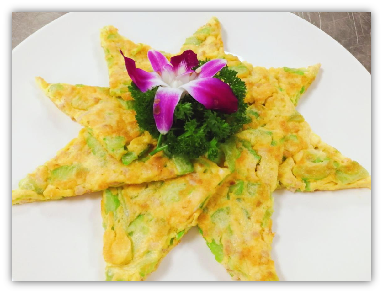 凉瓜煎蛋,凉瓜煎蛋是广东省传统的名菜,属于粤菜系。苦瓜清热解暑,消肿解毒,是夏季必备的解暑菜肴。凉瓜煎蛋不仅能够减少苦瓜中苦味对味蕾的冲击,而且,与鸡蛋配合,别有一番滋味。
