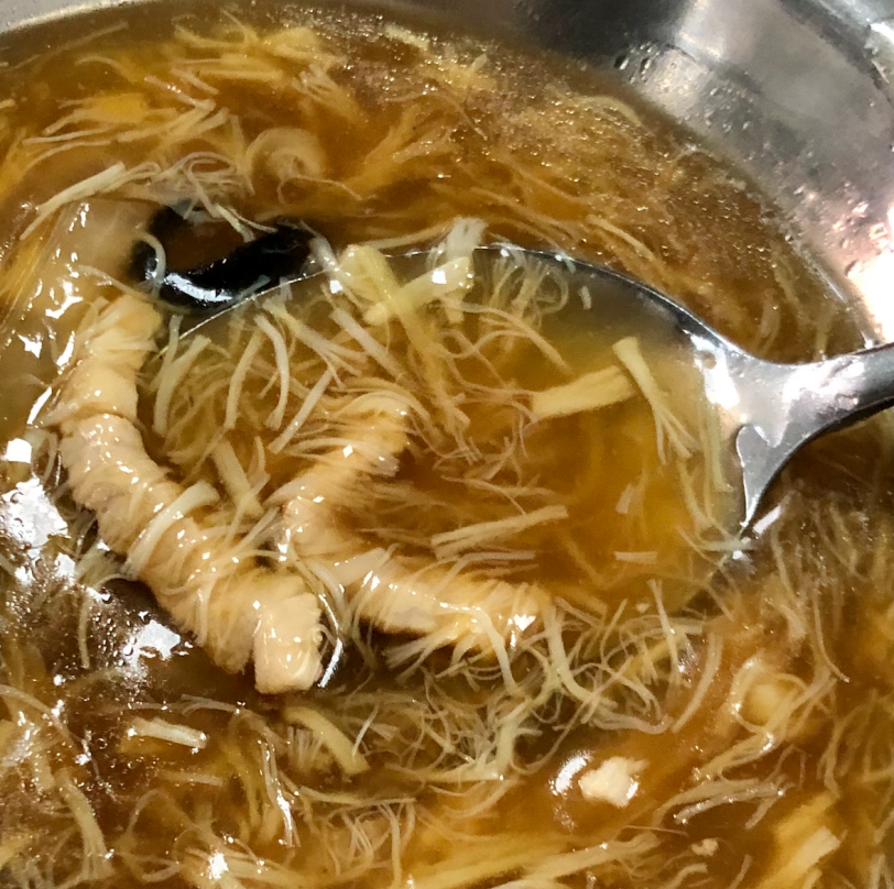 3.锅中下油加入姜丝爆香后加入适量冬清水,进行调味,再倒入冬瓜、海参、干贝煮3分钟。