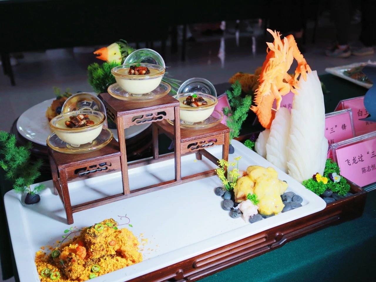烹饪工艺与营养专业的毕业生作品展亮点纷呈。学生凭借扎实功底与创新思维,在食材选用和烹饪技法上尽显高水准,既守传统之正,又创新颖之奇。为餐饮行业献宝贵范例,契合助力粤菜与中餐繁荣理念,彰显学子积极奋进之姿,未来可期。