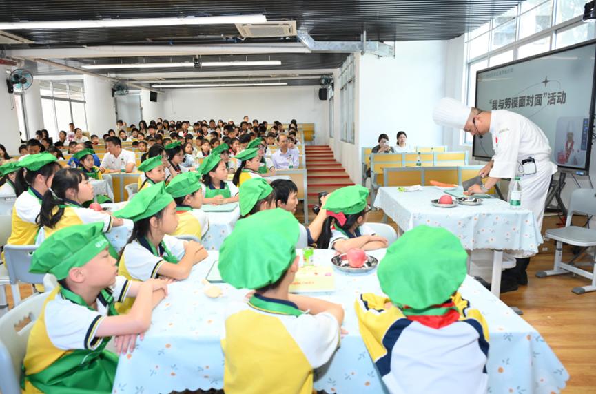 为深入贯彻落实广州市教育局《关于开展2025年天河区中小学“我与劳模面对面”活动》的通知精神,推动新时代劳动教育的实践与创新,弘扬劳模工匠精神,提升学生职业素养与实践能力,近日,广州华商职业学院联合天河区渔沙坦小学共同举办了“匠心烹艺,薪火传香——我与劳模面对面”主题活动。活动特邀我院正高级工程师、国家中式烹调高级技师、广东省“南粤技术能手奖”获得者、中国烹饪大师李绪彬担任主讲嘉宾,为师生们带来了一场精彩纷呈的劳动教育实践课。