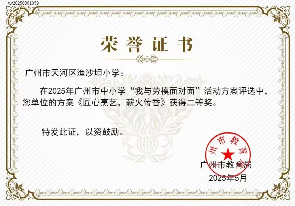 劳动创造幸福,匠心点亮未来!此次“我与劳模面对面”活动,成功搭建了高职院校与基础教育协同育人的桥梁,更通过劳模的示范引领,激励广大青年学子以匠心筑梦、以技能报国。未来,我院将继续深化产教融合,推动劳动教育与职业教育有机结合,为培养新时代高素质技术技能人才贡献力量!此次活动在2025年广州中小学“我与劳模面对面”活动评选中,荣获广州市教育局颁发的二等奖。