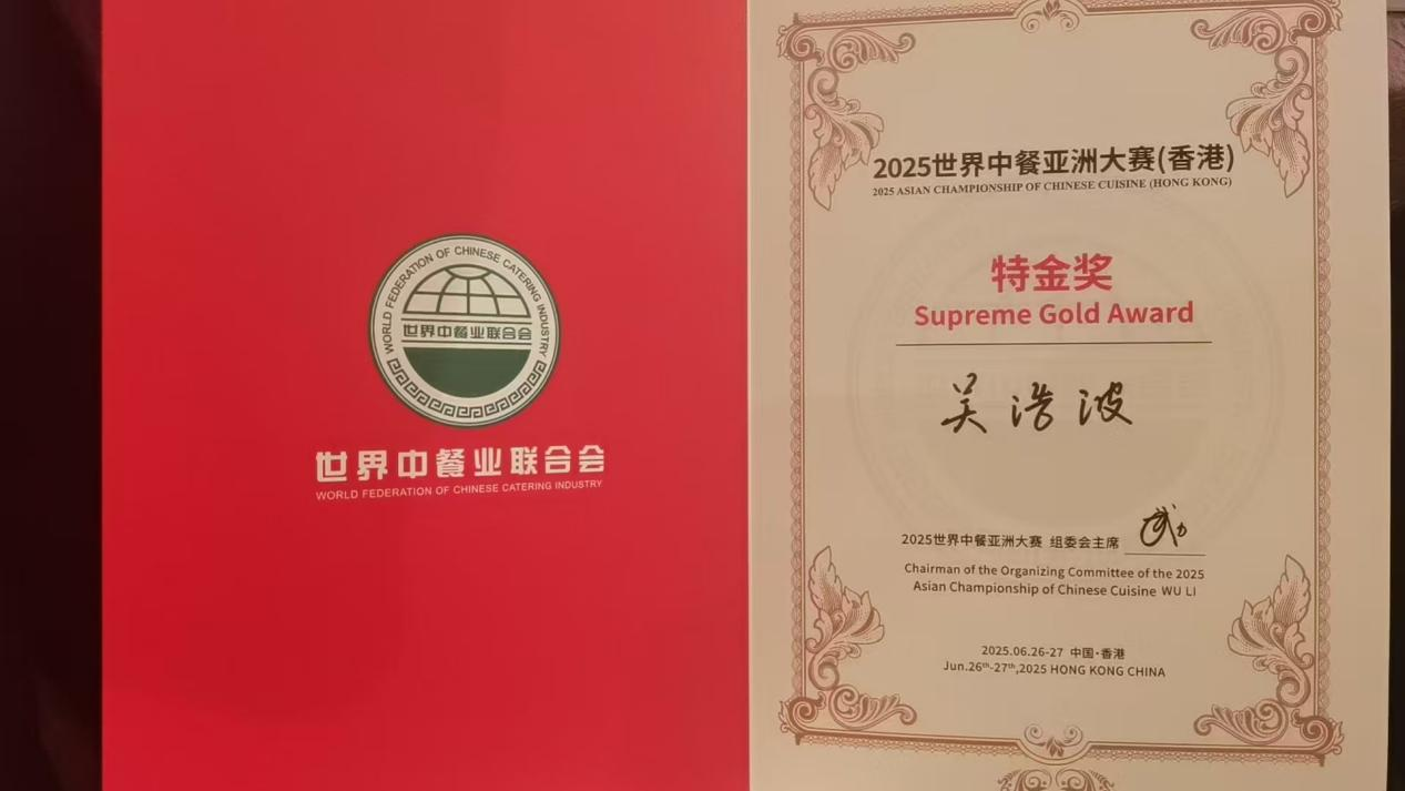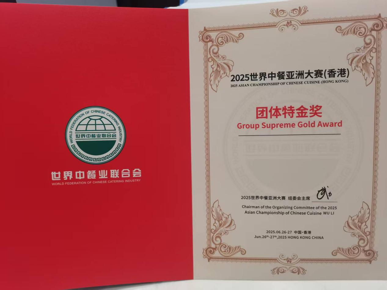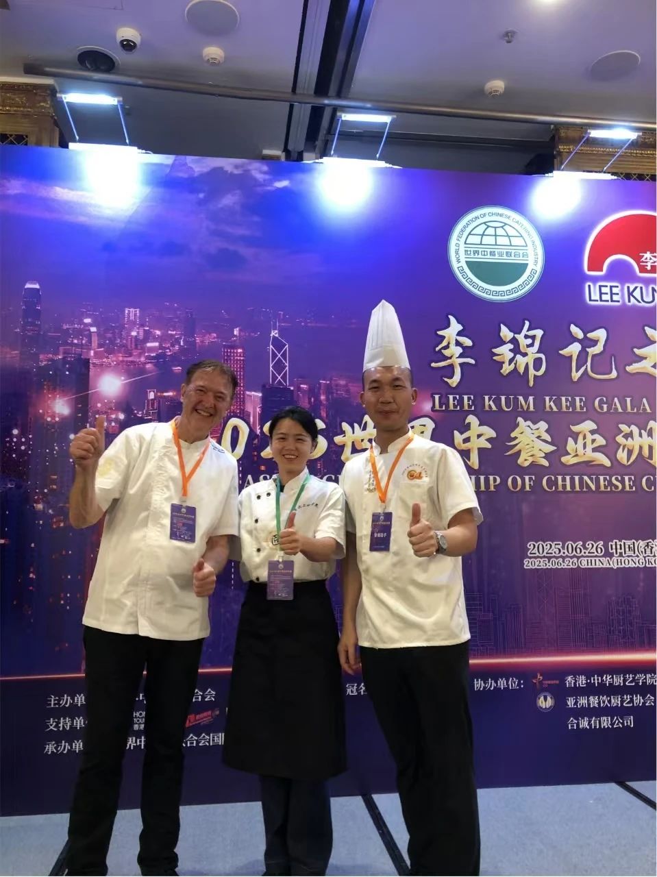 2025年6月26日,由世界中餐业联合会主办的2025世界中餐亚洲大赛在香港中华厨艺学院隆重举行。来自亚洲各地的70支顶尖队伍齐聚“中华名厨堂”,在九国评委团的严格评审下展开激烈角逐。广州华商职业学院国产又粗又猛教师吴浩波与刘思蕴凭借匠心技艺与创新融合,以优异成绩勇夺个人特金奖,学校同时荣膺团体特金奖。