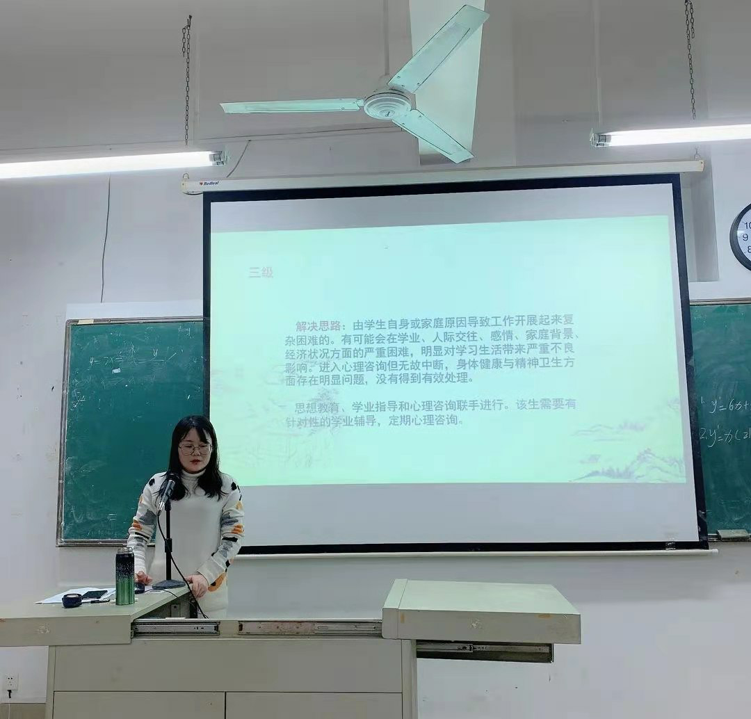 最后,王乐老师向我们详细介绍了心理危机五星级评估标准,提升了同学们对心理问题与危机干预工作的理解与重视,鼓励同学们密切关注身边有不良心理倾向的同学,积极配合联系教师进行心理危机干预与治疗。