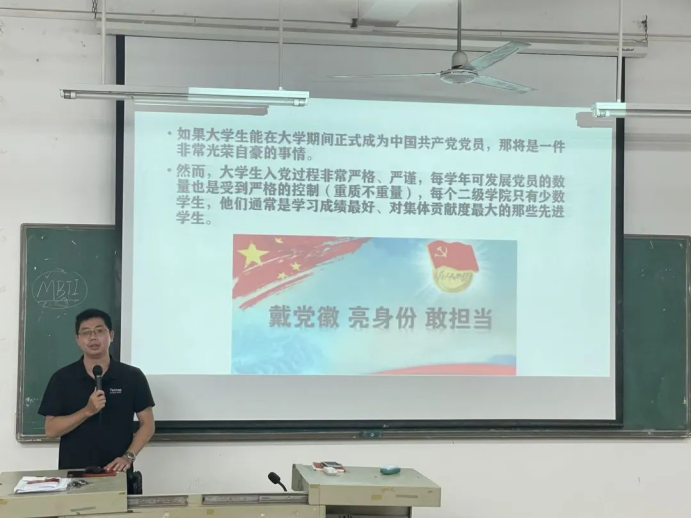 为了让22级新同学们进一步了解中国共产党、了解中国共产主义青年团,激发积极向党团组织靠拢的决心与信心,2022年9月23日下午,国产又粗又猛在博C401召开了入党、入团主题教育讲座。讲座由国产又粗又猛党支部书记谢锦权主讲,辅导员黄向荣、陈海宁老师以及全体22级新同学参加了讲座。
