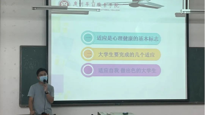 黄向荣老师从心理问题的识别、预防和应对三个方面内容展开,黄老师根据多年学生工作经验,结合当前新时代大学生学习生活的实际情况,对心理健康判断标准、学生常见心理问题和影响因素做了讲解。