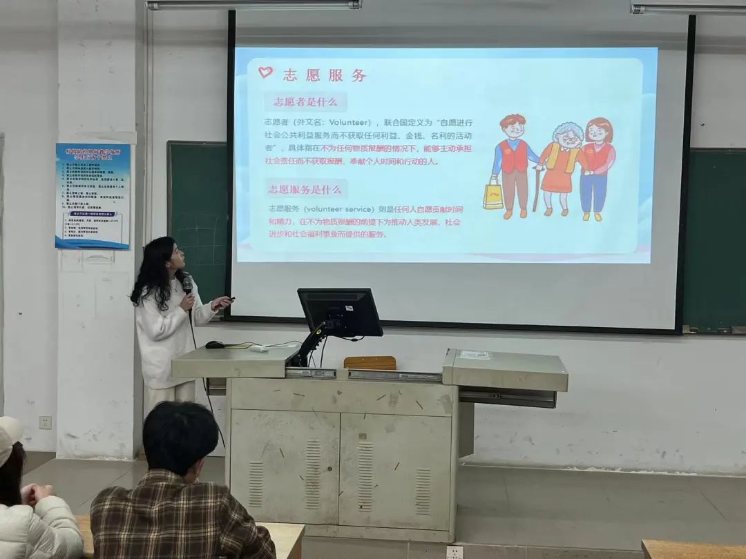优秀学子潘玉霞向我们讲述了什么是志愿者以及志愿服务,并告诉了同学们如何成为一名志愿者参与到志愿服务当中。志愿精神是雷锋精神的重要组成部分,志愿精神是雷锋精神的衍生与传承,他们是一脉相承的。