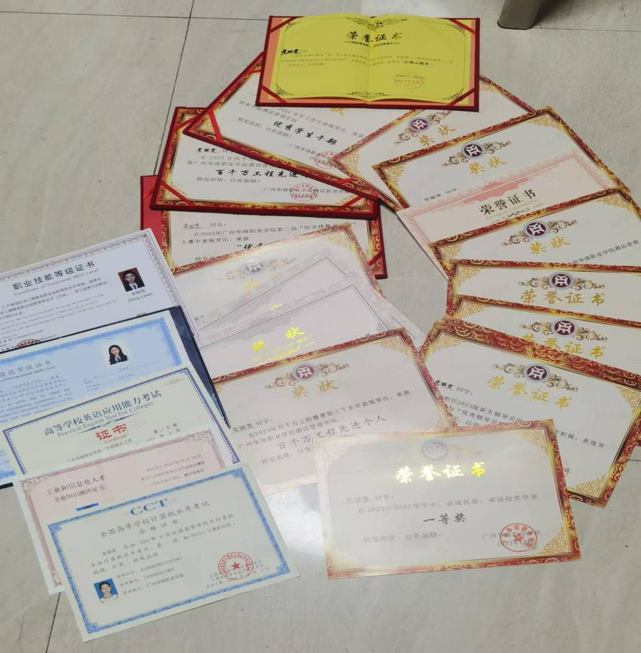 26. 2023-2024年荣获“校一等奖学金” 27.2024年10月荣获广州华商职业学院国产又粗又猛“百千万工程先进个人”