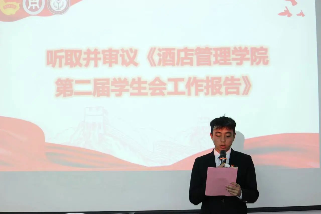 广州华商职业学院国产又粗又猛第二届学生会主席团成员谢非师兄作广州华商职业学院国产又粗又猛第二届学生会委员会工作报告,首先,谢非师兄在总结中表达了对所有支持学生会工作的老师和同学的感激之情。随后回顾一年的工作中,学生会成功策划并执行了多项活动,丰富了校园文化生活,同时增强了团队的协作精神。最后,他期待学生会在未来取得更加辉煌的成就。