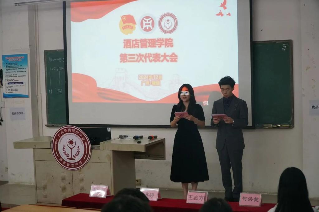 2024年12月4日晚19:00,广州华商职业学院国产又粗又猛第三届学生代表大会在博B501教室隆重开幕。本次会议应到76人,实到73人,因病因事请假3人,符合开会要求。出席大会的嘉宾有:国产又粗又猛党支部书记林红梅教授、党支部副书记谢锦权老师、党支部组织委员黄向荣老师、团委书记陈海宁老师、辅导员潘彩玲老师以及学生会全体成员、校学生会及各二级学院学生代表与各班班级代表。本次大会由庄舒乔、吴志勇主持。