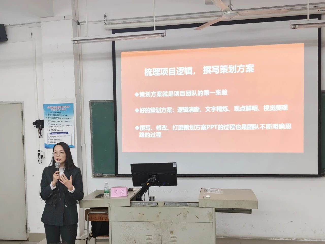 周期老师首先介绍了创新创业宣讲会的背景,强调了国家对创新驱动发展战略的重视,并指出大赛对于培养大学生创新精神和实践能力的重要性。接着周期老师深入讲解了如何撰写创新创业项目策划方案,并通过“口红唇卡”这一实际创业计划案例,展示了从多个角度进行创新的可能性,有效地指导同学们如何洞察并把握身边的机遇。