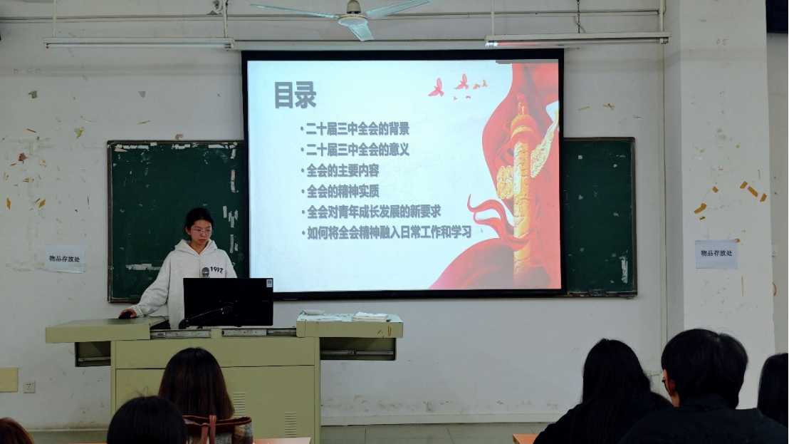 宣讲人温晴晴以“学习贯彻党的二十届三中全会精神”为核心主题,致力于引导青年深入学习党的创新理论,争做新时代好青年。她表示,青年要在政治忠诚上与党保持高度一致,在家国情怀中激发责任感和使命感,在理论学习中打牢坚实的基础,在实践能力中锻炼和提升自己的技能,在道德修养中塑造高尚品格,在国际视野中拓宽自己的眼界。此外,她还强调了身心健康的重要性,认为这是全面发展的关键。通过这些方面的综合培养,旨在塑造出能够适应时代发展、引领未来的优秀青年。
