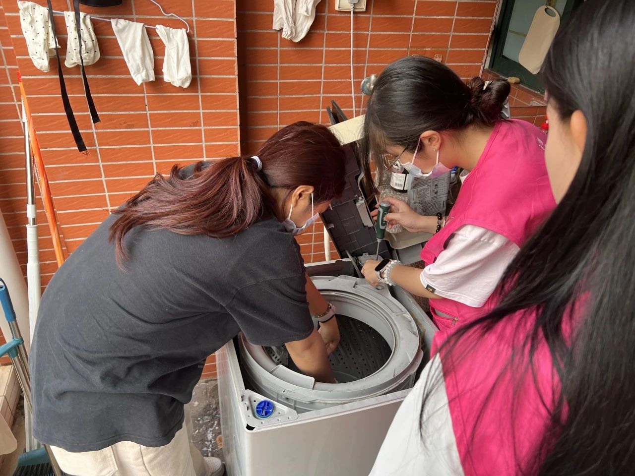 活动当天,酒管的志愿者们集合完毕,经过简短的培训,大家迅速掌握了清洗洗衣机的正确方法和注意事项。他们分组前往各个宿舍,开始了忙碌的工作。在清洗过程中,志愿者们分工明确,有的负责拆卸洗衣机的过滤网,清理出其中积累的杂物;有的则仔细擦拭洗衣机的内筒和外壳,去除顽固的污渍;启动洗衣机进行深度清洗。尽管过程中可能会遇到一些困难,比如顽固污渍难以去除,或者洗衣机的零部件较为复杂难以拆卸,但志愿者们凭借着耐心和毅力,克服了这些难题。