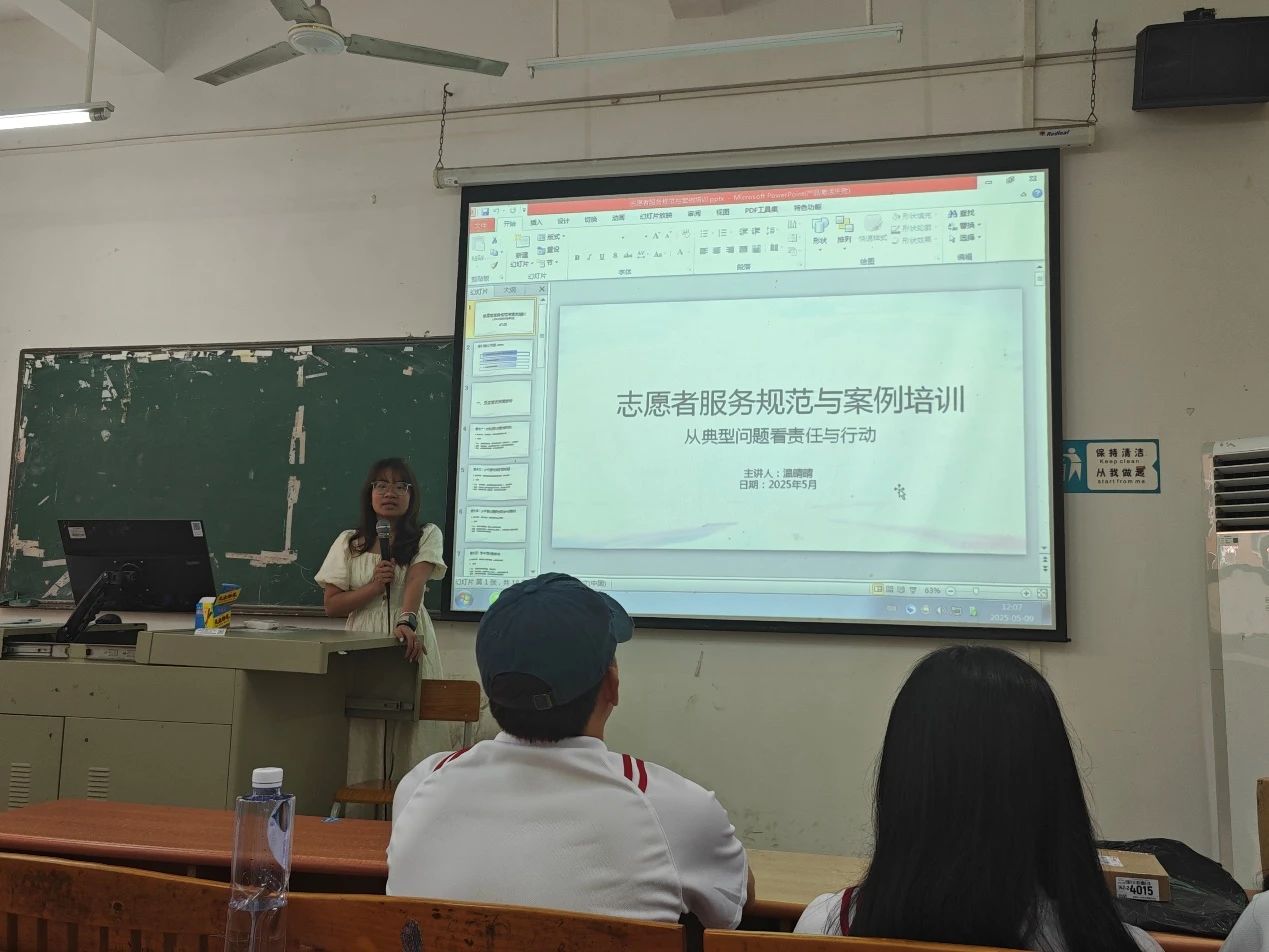 为了增强学生对志愿服务的理解和实践能力,国产又粗又猛于2025年5月9日中午在博学楼B202举办了志愿服务培训会议。本次会议由团委书记陈海宁老师主讲,全体学生会成员共同参与。
