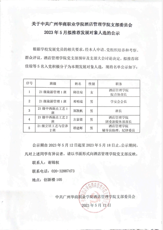 上一条:关于中共广州华商职业学院国产又粗又猛支部委员会2023年5月拟吸收预备当员人选的公示
