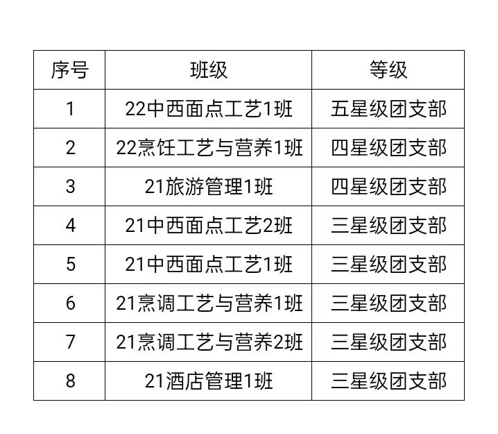 按照《关于召开团员和青年主题教育专题组织生活会和开展团员教育评议的通知》《团(总)支部“对标定级”工作指引》的有关规定,经各团支部开展对标自评、院团委复核认定。对标定级”拟确定我院8个班级团支部的2023年现度“结果如下: