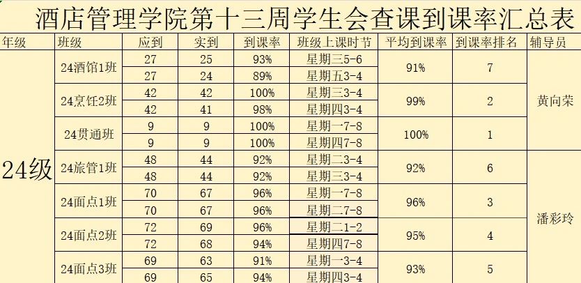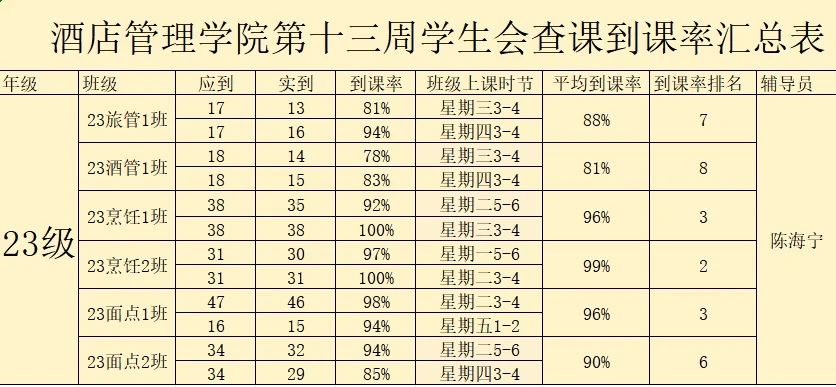 以上是第十三周的到课率汇总,本次查课活动充分展现了学生们积极进取的精神风貌。希望同学们能够继续保持良好的学习习惯,认真对待接下来的每一堂课,在新学期争做更优秀的自己,砥砺前行,不负韶华!