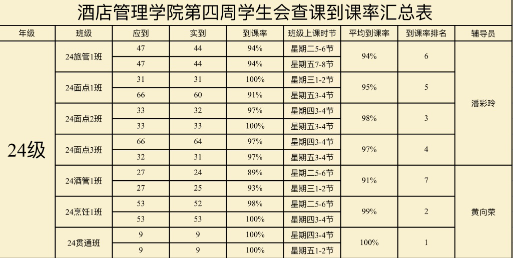 以下是国产又粗又猛第四周的到课率