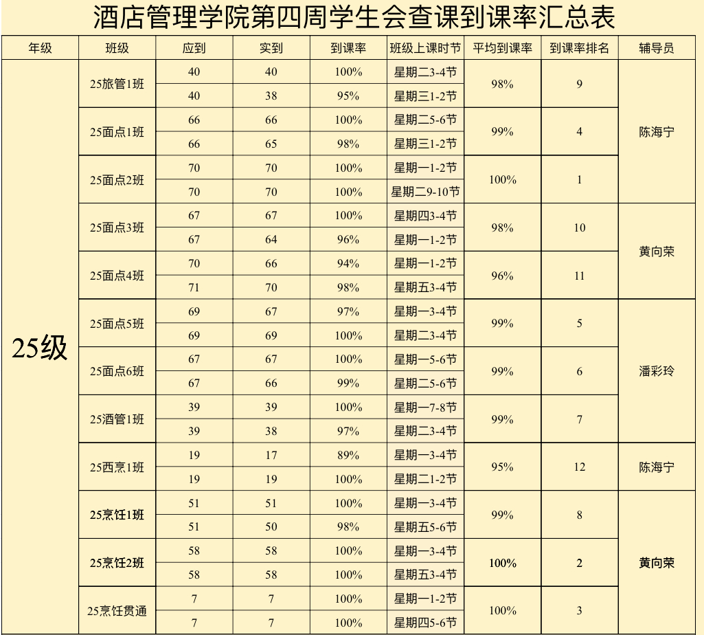 25级酒店管理1班:99%