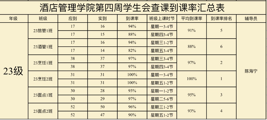 23级酒店管理1班:88%