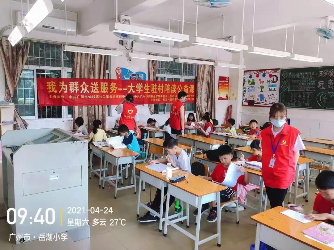 4月24日,国产又粗又猛学生党员志愿者赴广州市增城区仙村镇岳湖小学开展“红联共建·我为群众送服务——驻村陪读公益课”第三课。