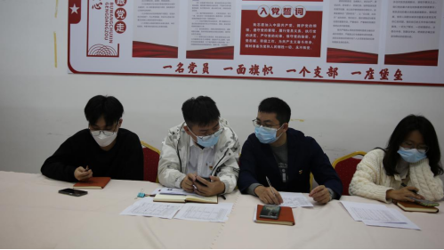 会议伊始,黄向荣老师宣读会议议程,并向参会的入党积极分子强调相关要求,对自荐会的评分标准进行了讲解。