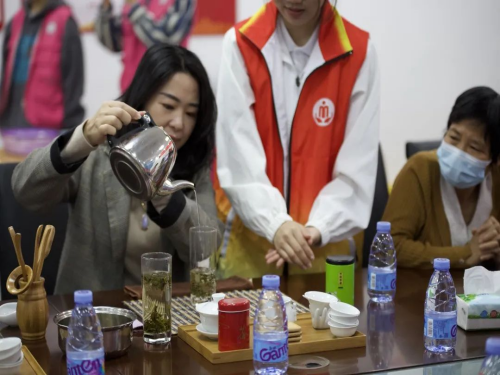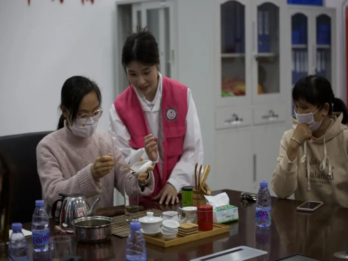 活动现场,实习辅导员谢香德和大家分享了茶文化与茶艺,整个讲座内容丰富,图文并茂,深受在座女性朋友们的喜爱。茶艺师志愿者们现场指导妇女同志们进行绿茶,红茶的茶艺体验,用通俗易懂的语言讲述绿茶,红茶冲泡流程的差异。各位女性朋友们在茶艺师的指导下学习了布具,备水,敬礼,赏茶,温器,泡茶,奉茶,礼毕等冲泡流程。