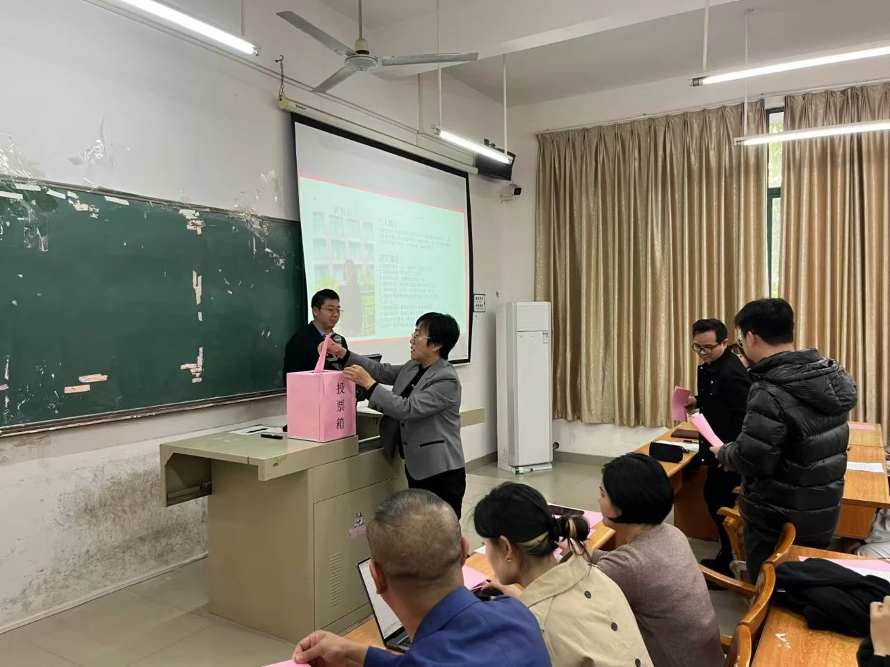 支部大会对两位同志转预备党员事宜进行讨论,与会正式党员充分发表意见,并以无记名投票方式进行表决。经表决,到会正式党员同意发展宋佳柔、黄颖欣同志为预备党员。