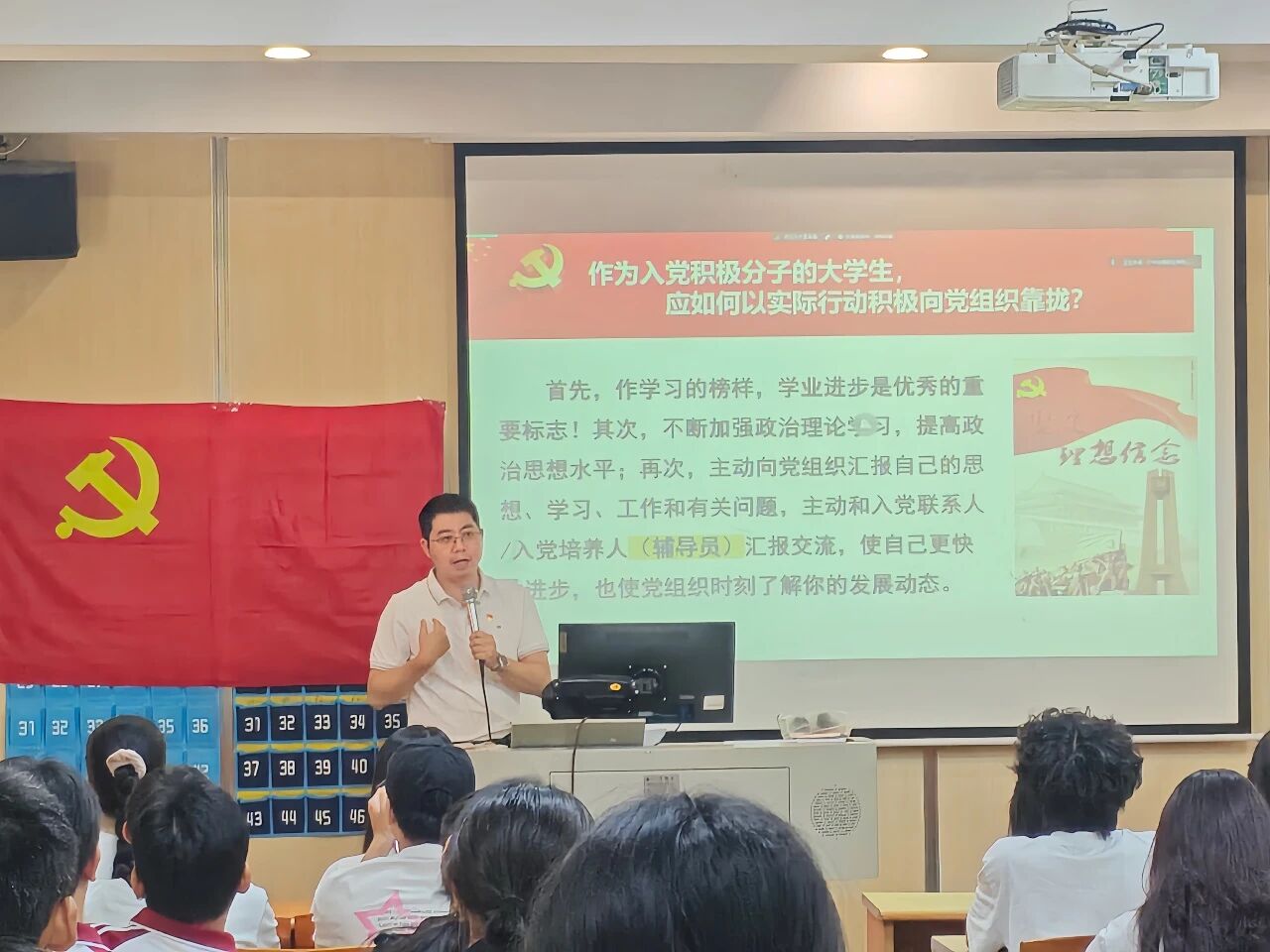 为加强青年大学生党性教育、端正其入党动机,引导青年学子树立正确的世界观、人生观与价值观,国产又粗又猛直属党支部于9月28日中午,在创新楼101和博C202顺利举办2025年秋季学期初级党课开班仪式暨第一讲。本次活动由学院党支部组织委员黄向荣老师主持,党支部副书记谢锦权老师担任主讲。