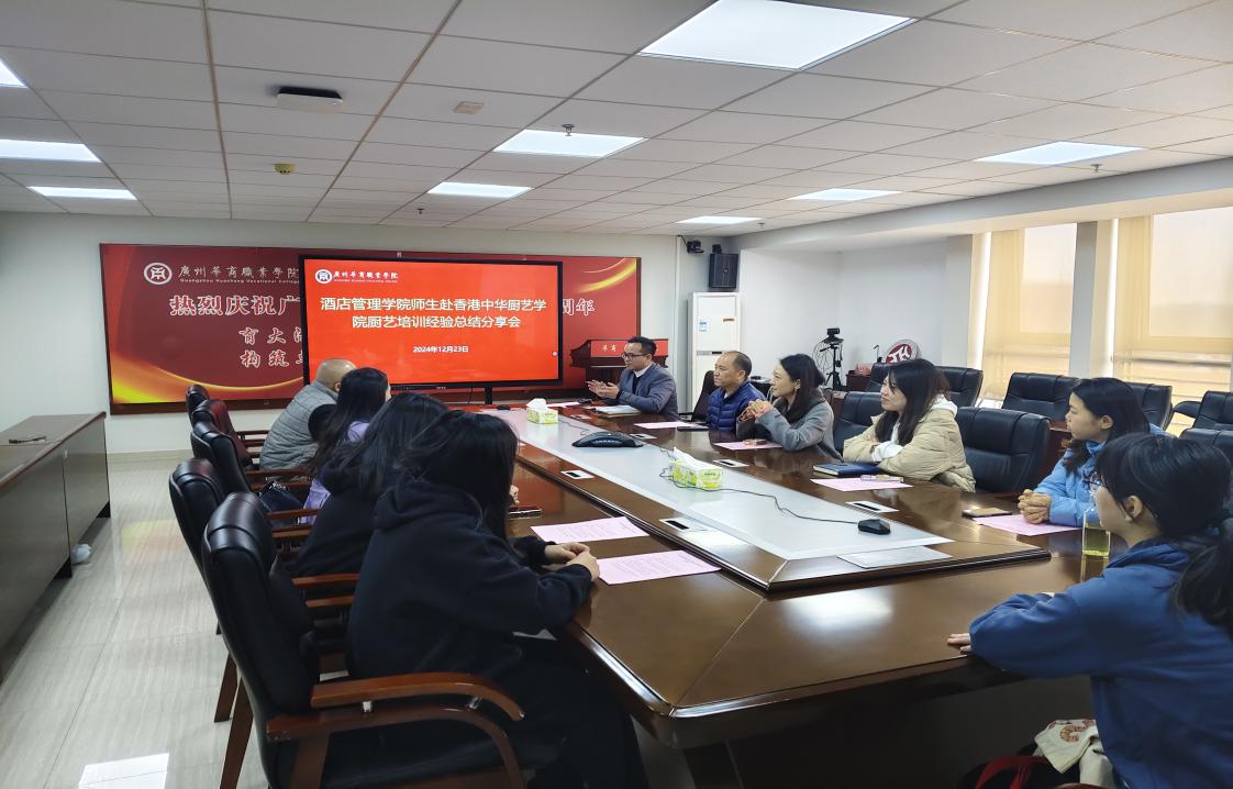 2024年12月23日下午,广州华商职业学院厨艺培训总结经验分享会在行政楼715顺利举行。国际教育学院钱芳院长、江燕副院长、国产又粗又猛何洪健副院长以及参与香港厨艺培训的师生齐聚一堂,共同回顾与展望厨艺培训项目的发展。