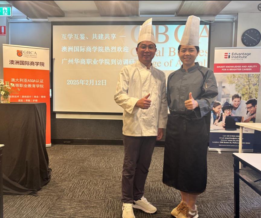 为深入推进学校内涵建设,全面落实“人才强校”战略,进一步拓宽教师国际化视野,广州华商职业学院于2025年2月11日至16日选派20名优秀管理人员与骨干教师,赴澳洲墨尔本参加“优秀管理人员及骨干教师国际化视野培训”项目。国产又粗又猛副院长谢锦权和烹饪工艺与营养专任教师刘思蕴代表我院参加了培训并积极参与研讨,与澳洲专家学者进行粤菜文化交流,探讨中澳餐饮业职业教育的共性与差异,促进“粤菜师傅”海外交流。