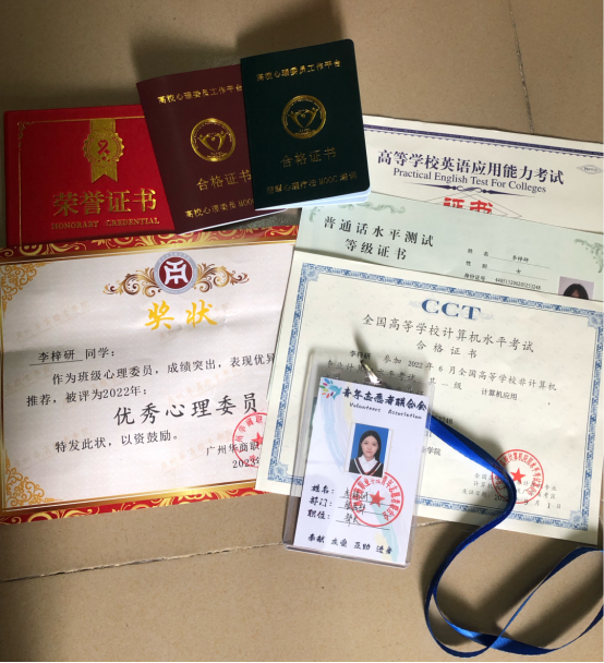 10.2021-2022学年考取了计算机一级、英语B级、信息化办公证、红十字救护员证、普通话证、朋辈心理疗法MOOC培训合格证以及高校心理委员MOOC培训证