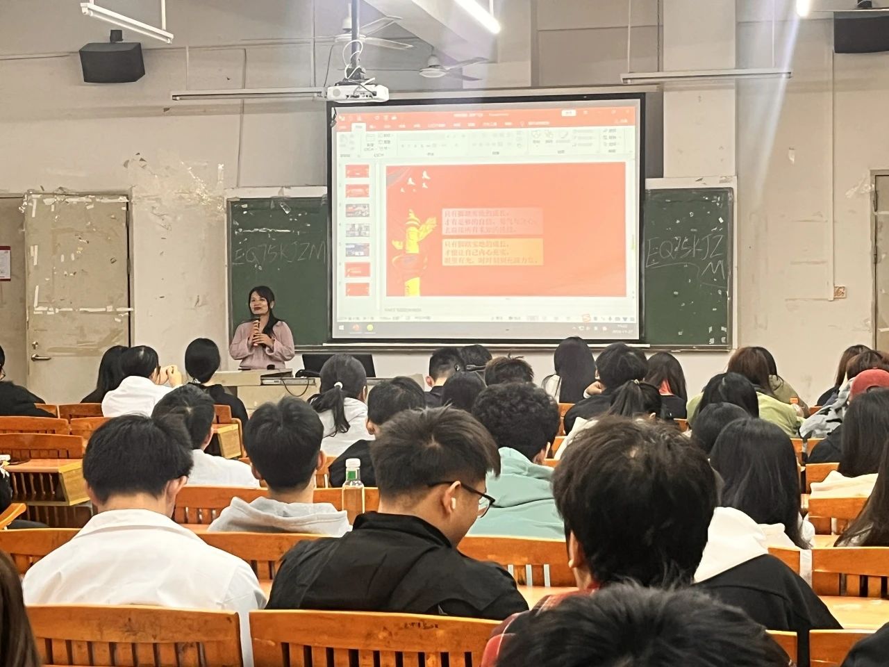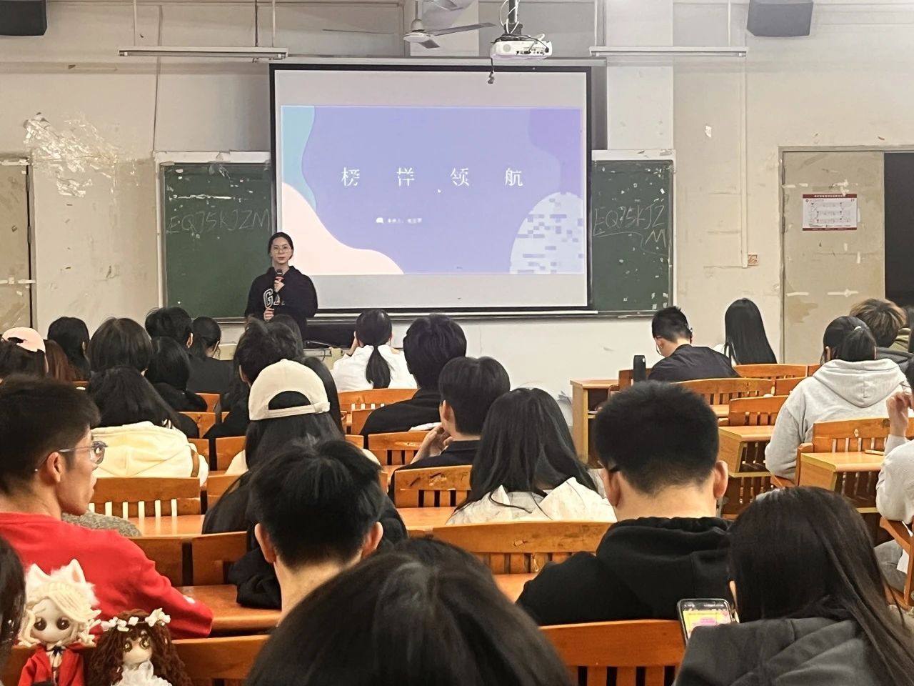 辅导员潘彩玲老师对本次活动作出总结。她强调,榜样的力量是无穷的。在座的每一位同学都是学院的宝贵财富,同学的成长和发展是学院最大的骄傲,也将会成为下一个榜样。党丽雯同学和陈雨欣同学,作为我们学院的优秀代表,她们不仅在学术上取得了优异的成绩,更在社会实践、志愿服务等方面展现了卓越的领导力和责任感。同时,她希望同学们作为新时代的青年,要树立远大的理想,勇于承担起时代赋予的责任,勤奋学习,不断追求卓越,努力成为各自领域的佼佼者。除了专业知识的学习,还要注重个人综合素质的提升,积极参与社会实践和志愿服务,培养团队合作精神和社会责任感。