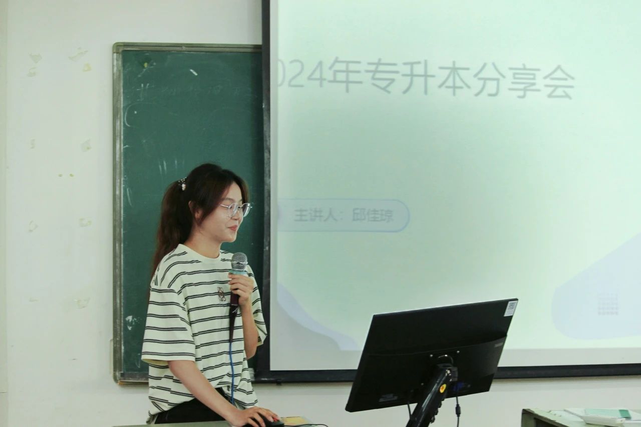 最后,目前就读于广州华商学院的邱佳琼师姐先是向同学们讲述了自己备考专升本时如何平衡学习和生活,在有限的时间内高效备考,成 他分享了专升本后进入本科院校如何快速适应新环境、融入新集体,继续保持学习的热情,提升自己的专业素养,师姐特别强调了长远规划的重要性,对于备考过程中遇到的困难,比如知识点繁多难以记忆,或者学习时间和校内课程、实践活动冲突等问题,她鼓励同学们要学会调整心态,积极寻找解决办法。可以利用碎片化时间进行记忆,如在课间、排队时用手机软件刷几道题、背几个知识点;遇到时间冲突时,要提前和老师沟通协调,合理安排好各项事务,确保专升本备考不受太大影响。