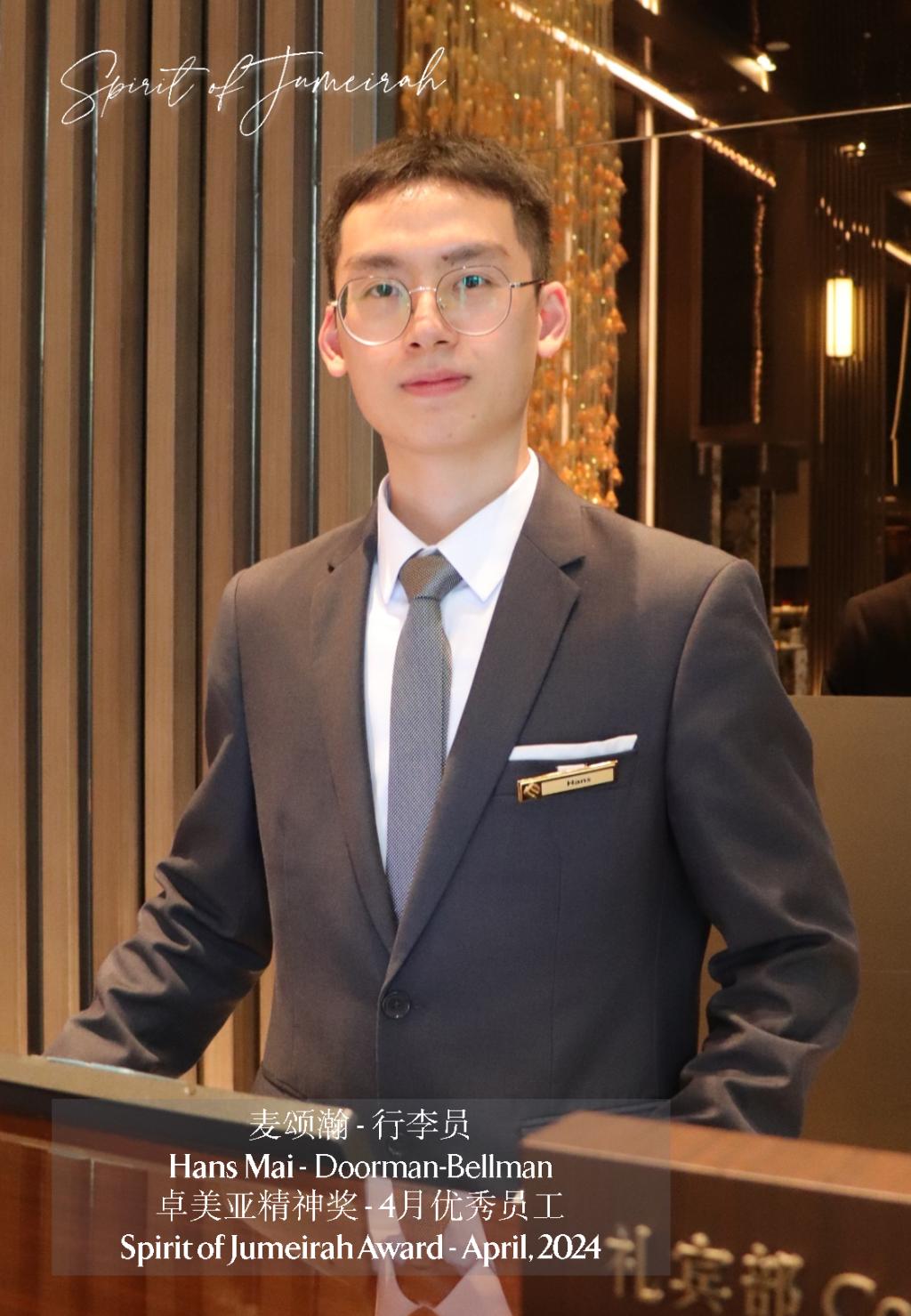 2020年毕业后,麦颂瀚把职业锚点锁定“五星酒店+极致服务”双轮驱动,开启“三级跳”: